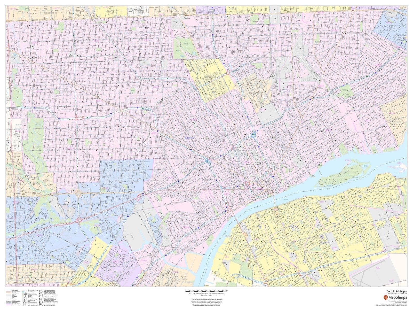 Detroit, Michigan Laminated Wall Map (Landscape) (MSH)
