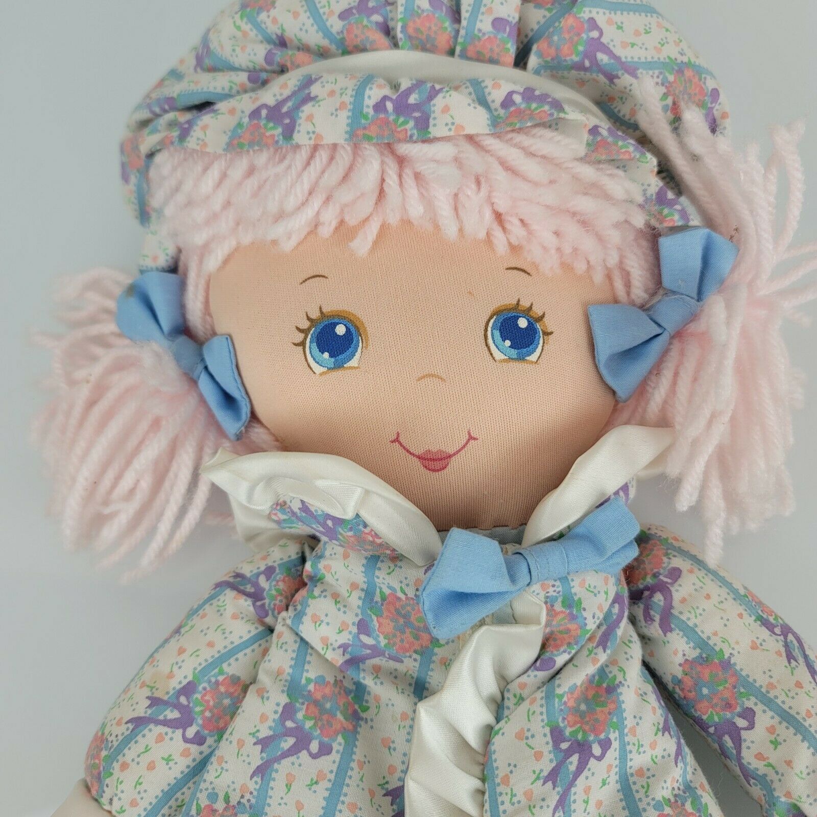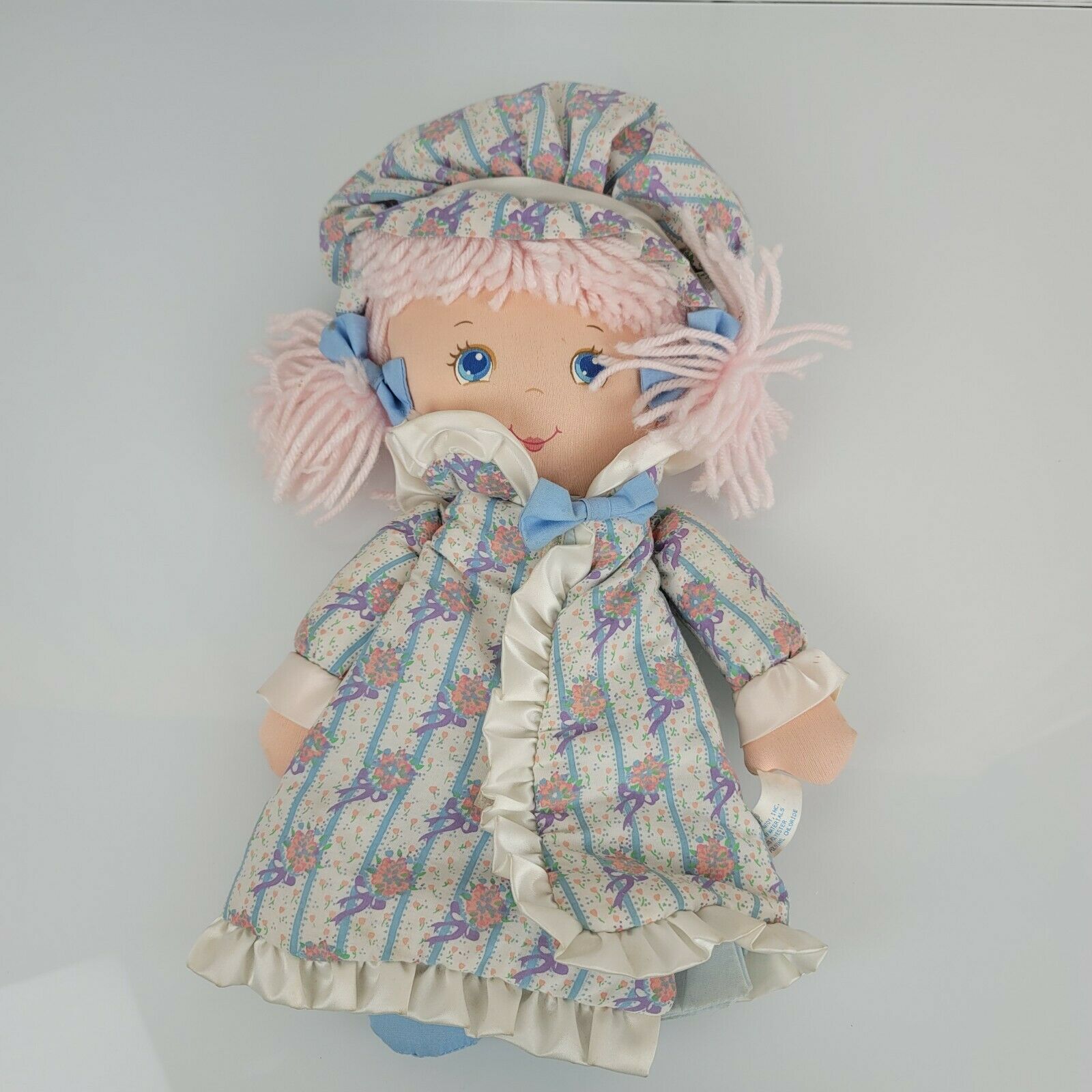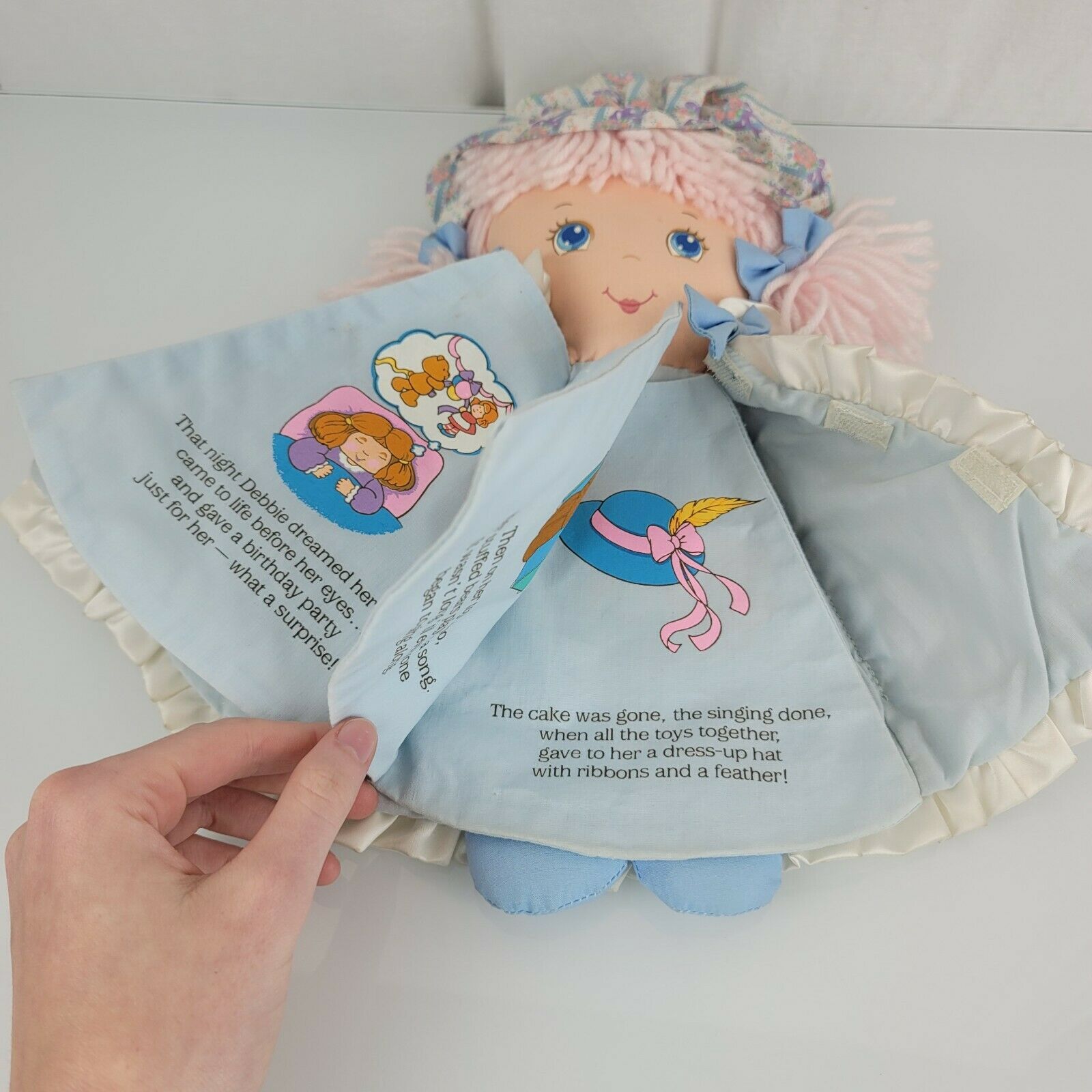 Amtoy Dolly Tales Stuffed Plush Soft Cloth Doll Book Yarn Hair Pink Blue 1987