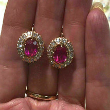 4Ct Coupe Ovale Rose Rubis Diamant Halo Drop dangle Boucles 14K or Jaune Finish