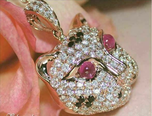 2Ct Corte Redondo Rojo Rubí y Diamante Panther Colgante 14K Acabado de Oro Rosa