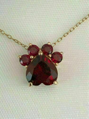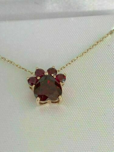 2Ct Coupe Ronde Rubis Rouge Chien Patte Pendentif 14K Finition or Jaune 18 "