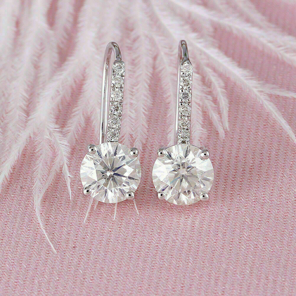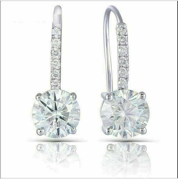 1.50Ct Corte Redondo D/VVS1 Diamante Aro Pendientes 14K Acabado en Oro Blanco