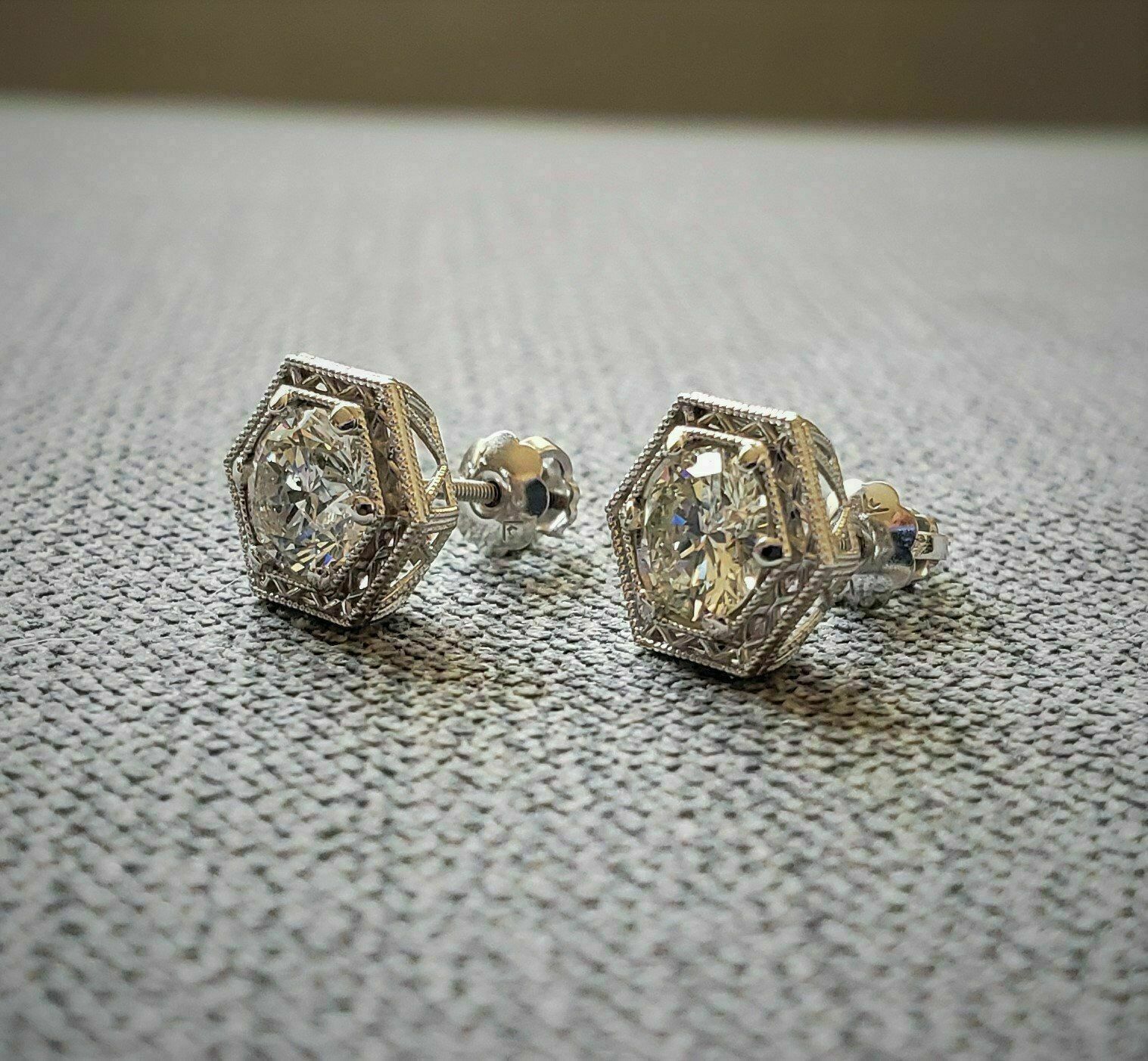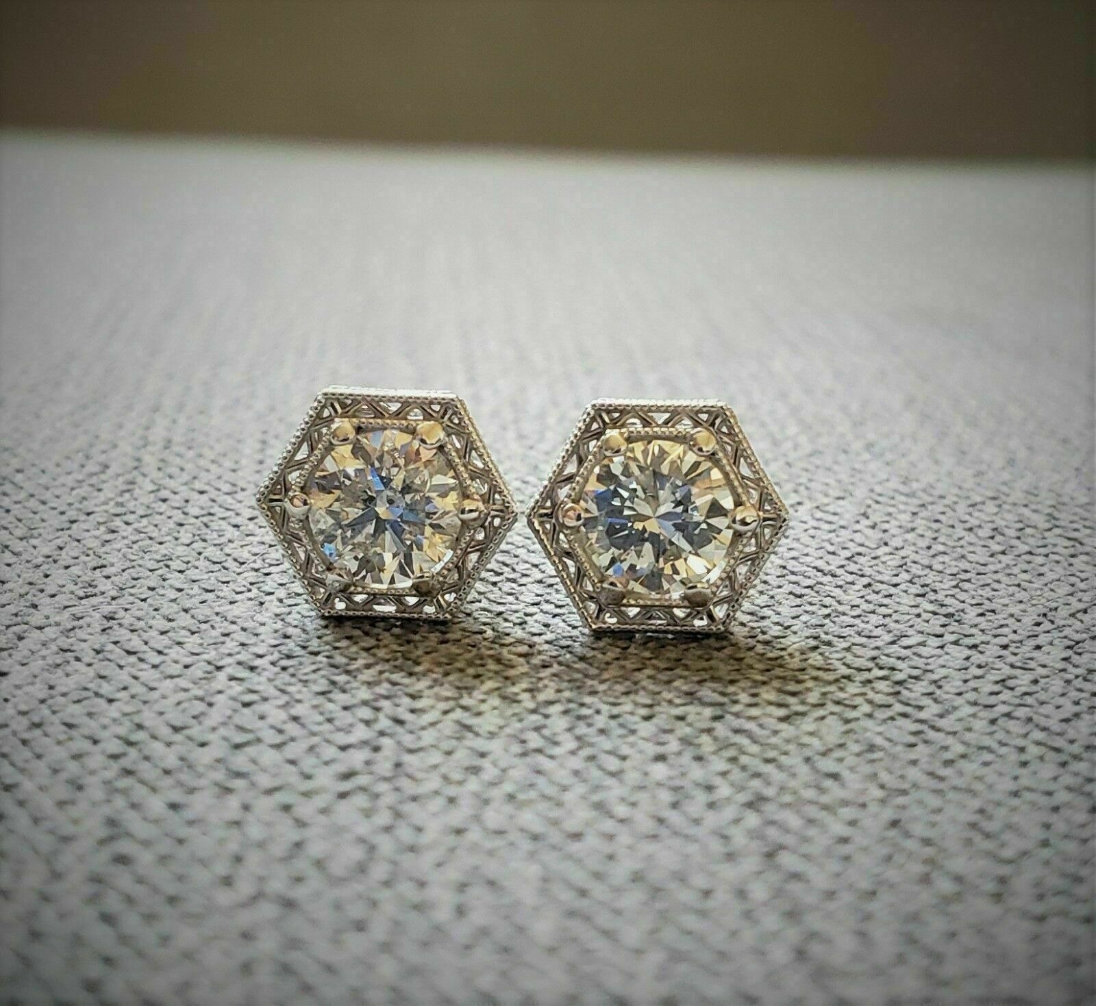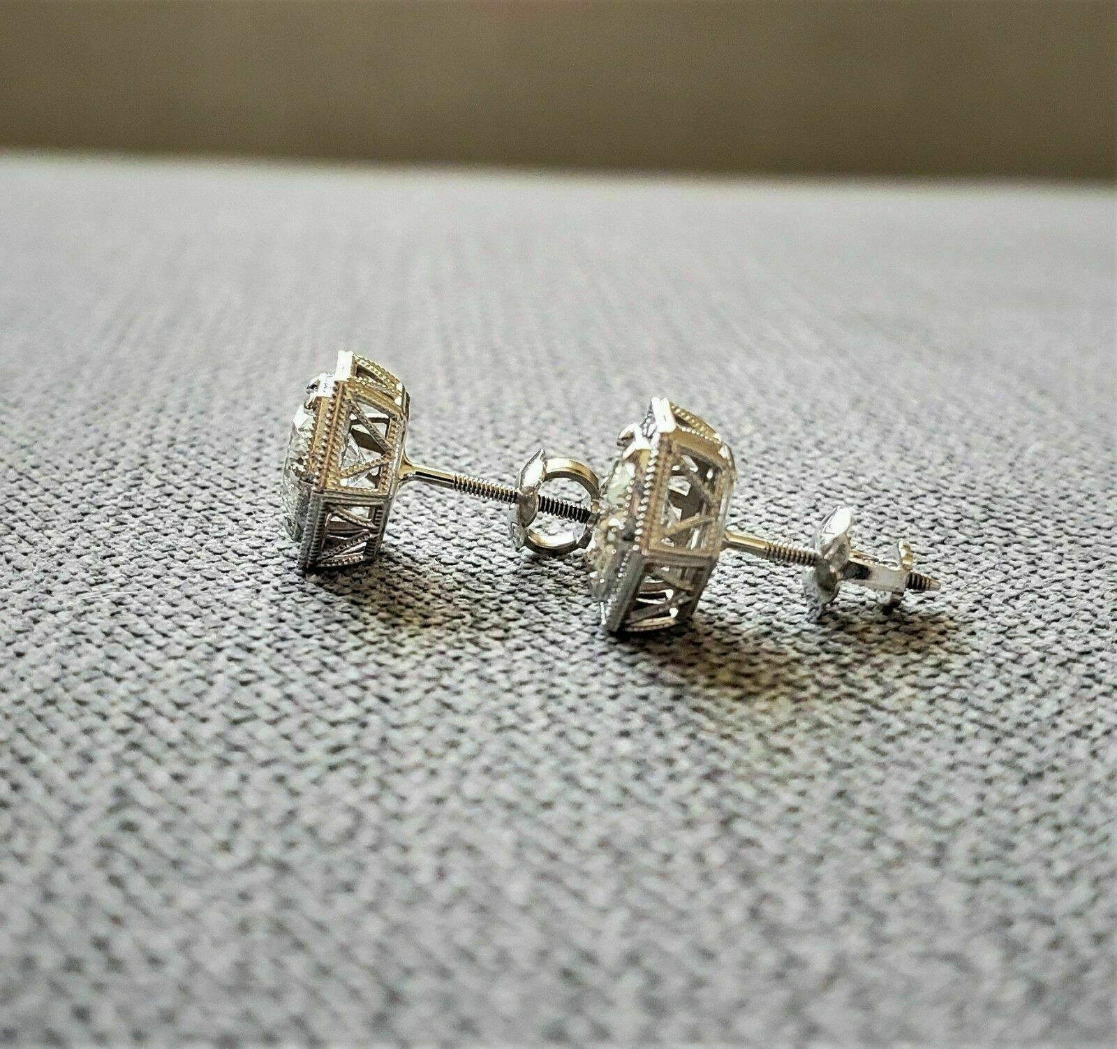 2Ct Rundschliff Diamant Vintage Milgrain Ohrstecker Ohrringe 14K Weißgold Finish