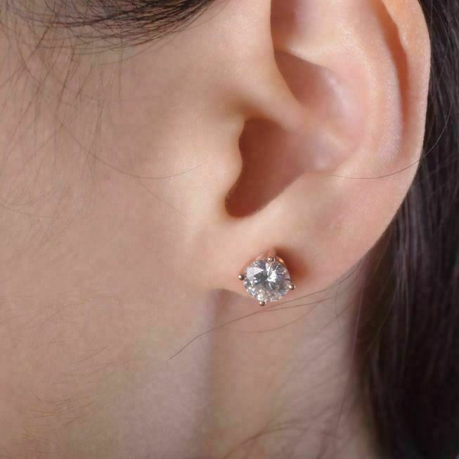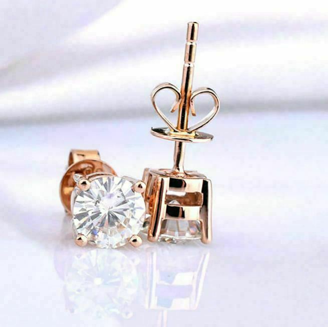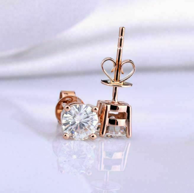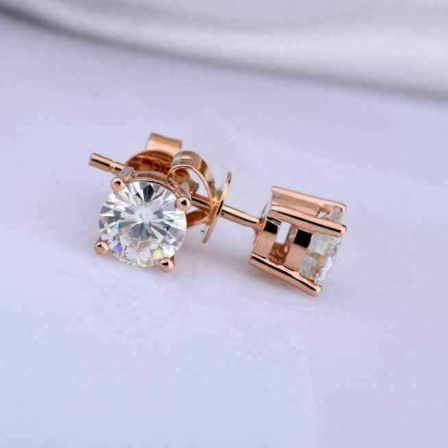 14K Oro Rosa Acabado 2Ct Corte Redondo Moissanita a Presión Solitario Dormilonas