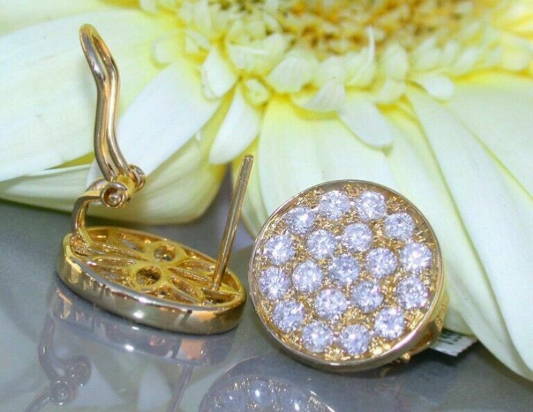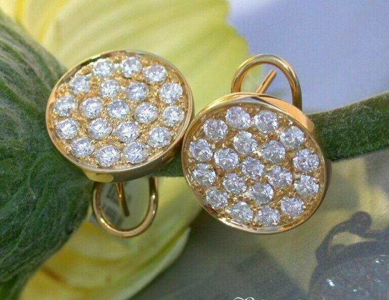 2.50Ct Rond Coupe D/VVS1 Cluster Diamant Clou Boucles 14K Finition or Jaune