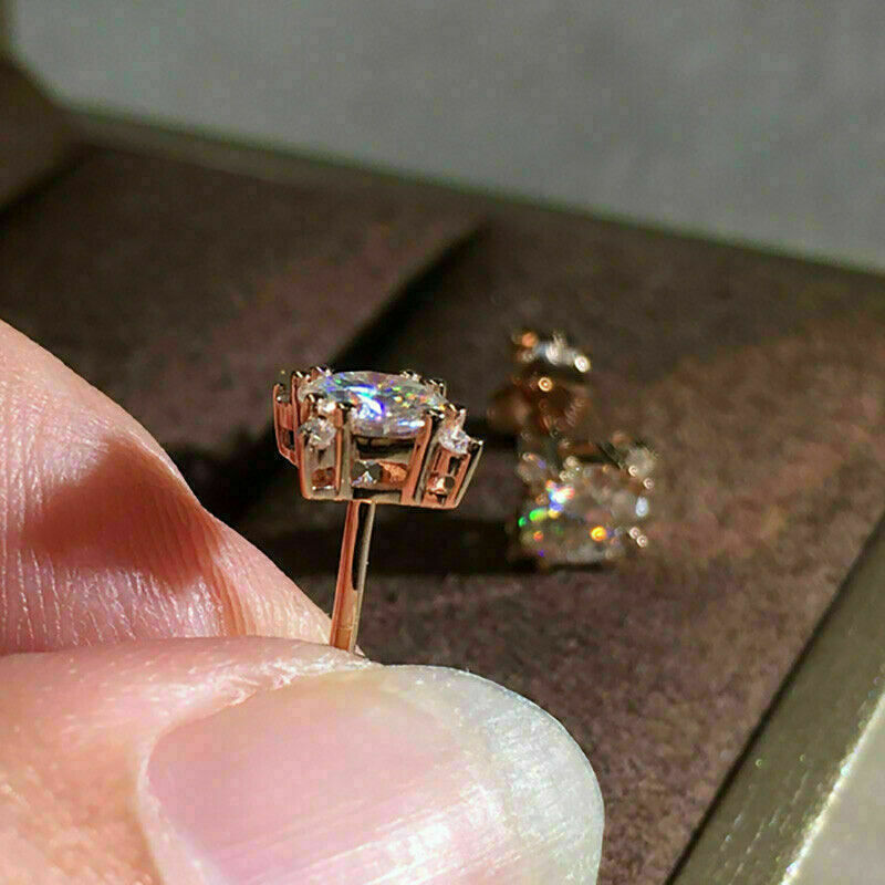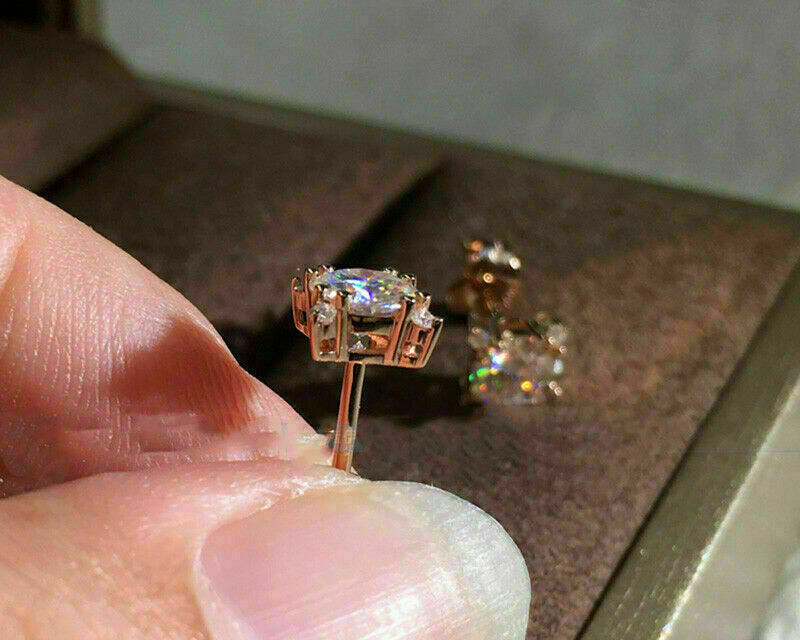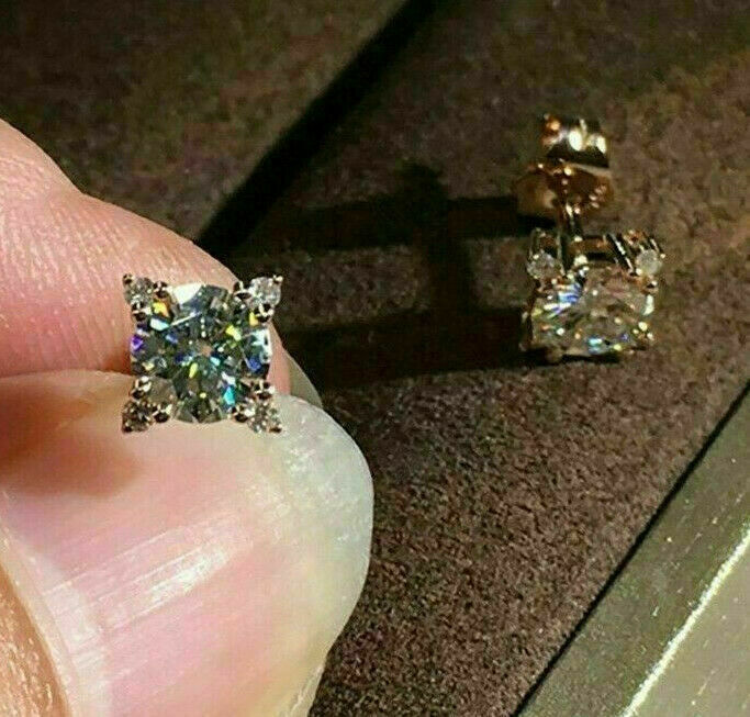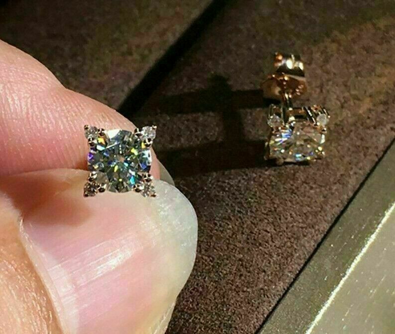 2Ct Corte Redondo Moissanita Solitario Dormilonas a Presión 14k Oro Rosa Acabado