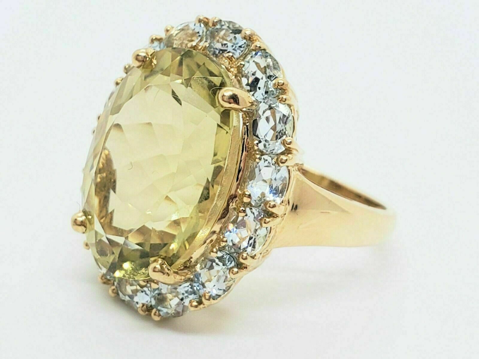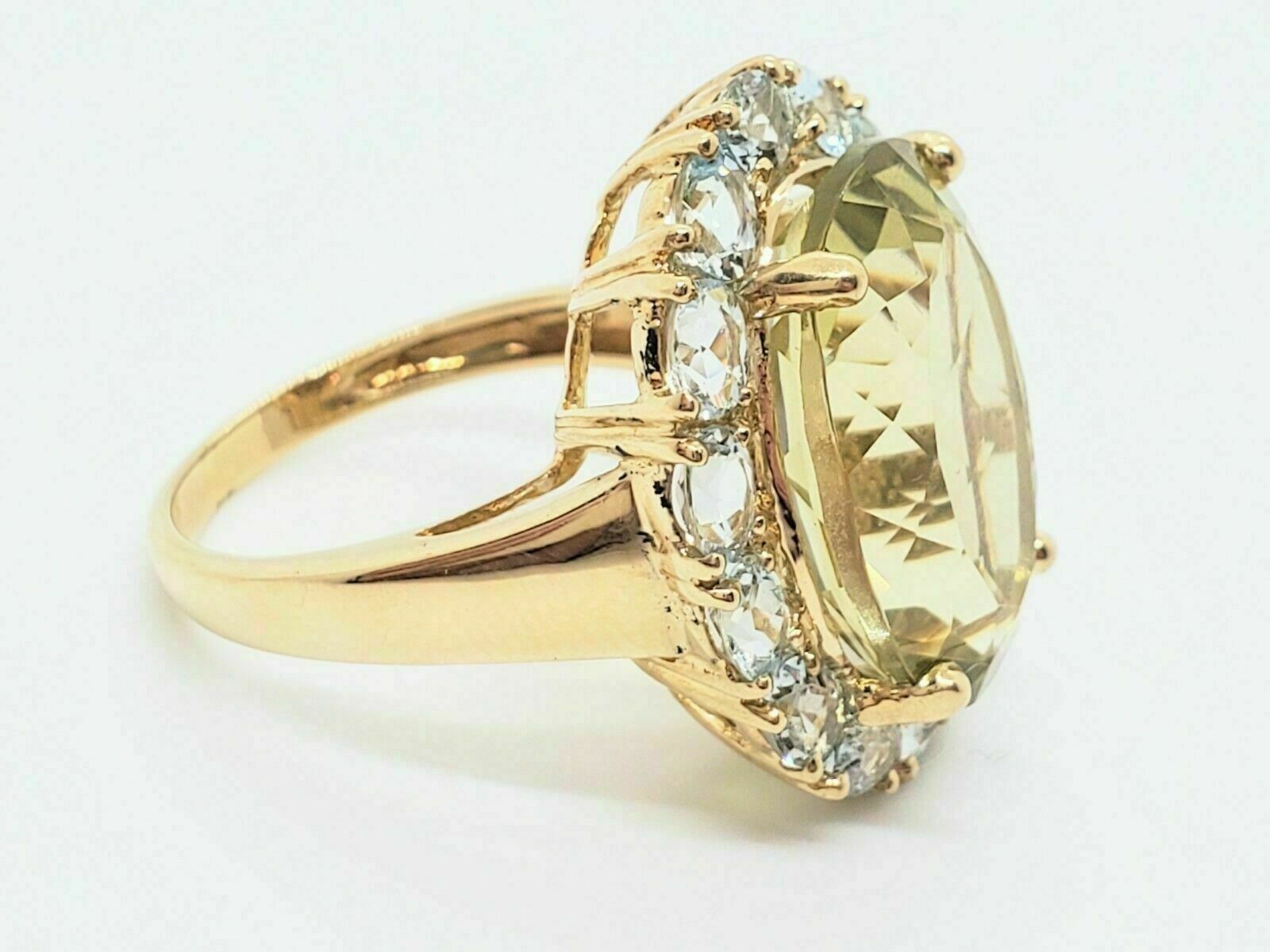 3Ct Taglio Ovale Giallo Citrino Donna Halo Fidanzamento Anello 14K Finitura Oro