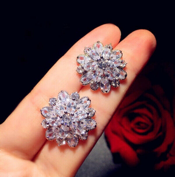 14K Bianco Finitura Oro 3Ct Taglio Ovale VVS1/D Diamante Premere Retro Grappolo