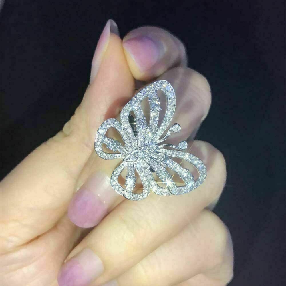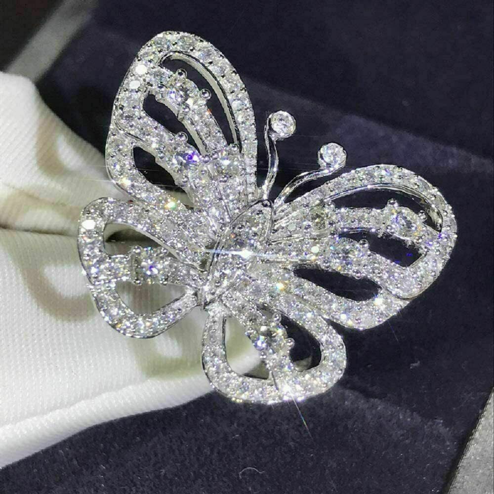 1Ct Rund Schliff VVS1/D Diamant Schmetterling Verlobung 14k Weißgold Finish