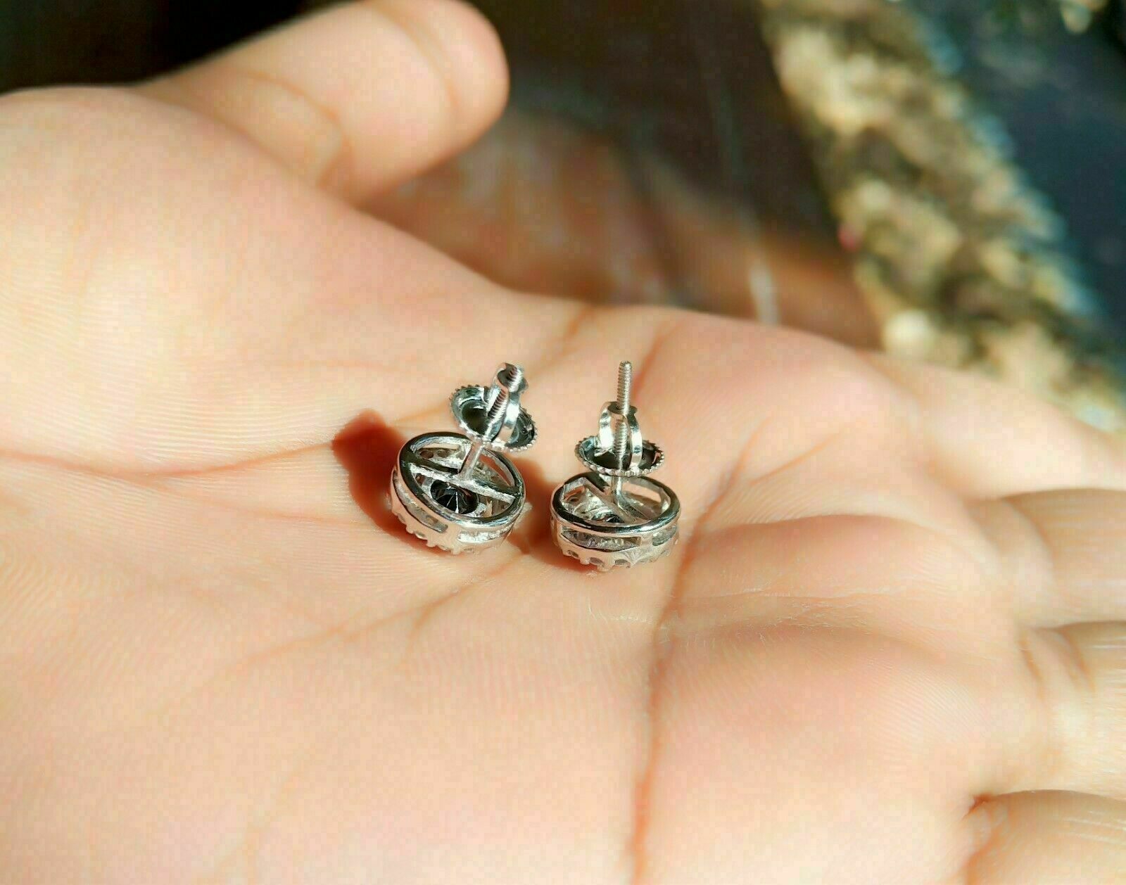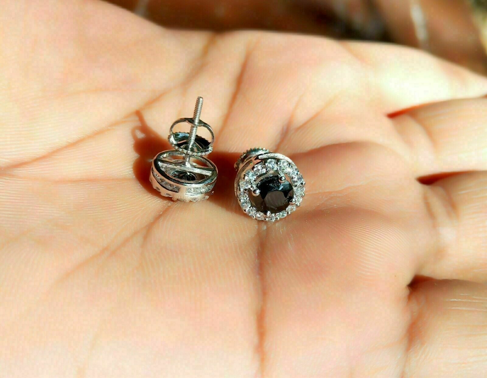 2Ct Corte Redondo Negro Diamante Halo Tacha Pendientes En 14K Acabado Oro Blanco