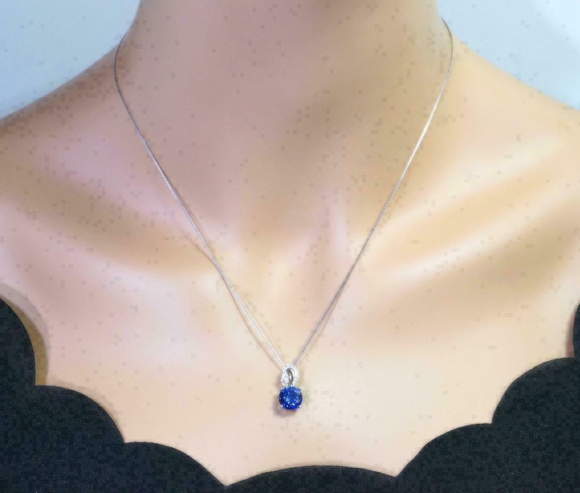 2.50Ct Corte Redondo Azul Sapphire&diamond Colgante 14K Oro Blanco Acabado Libre