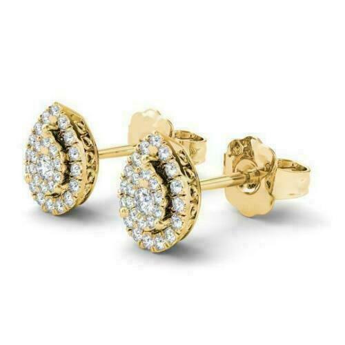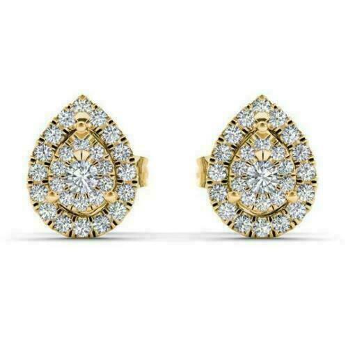 1.50ct Rundschliff Diamant Birne Form Ohrstecker 14k Gelbgold Finish