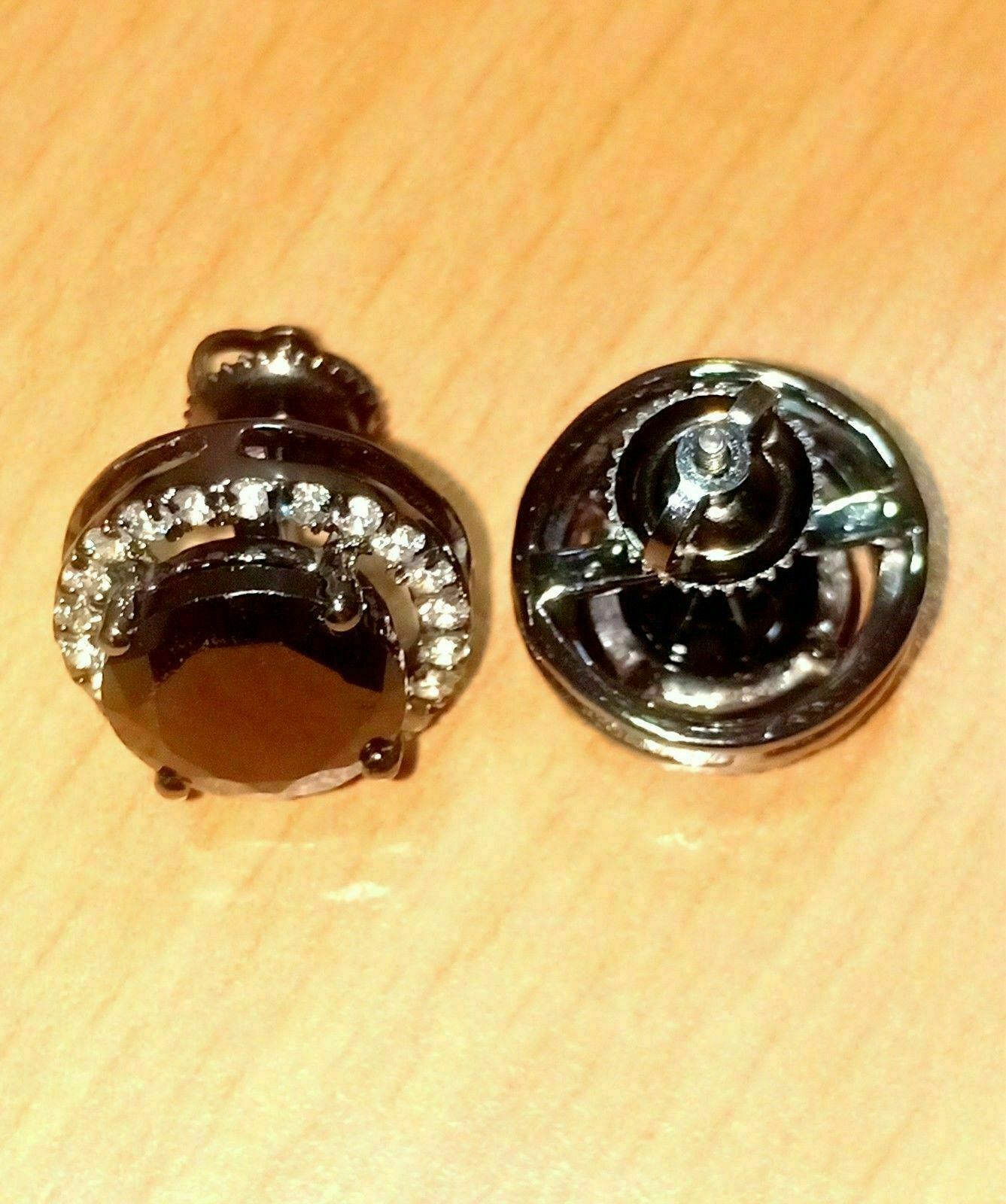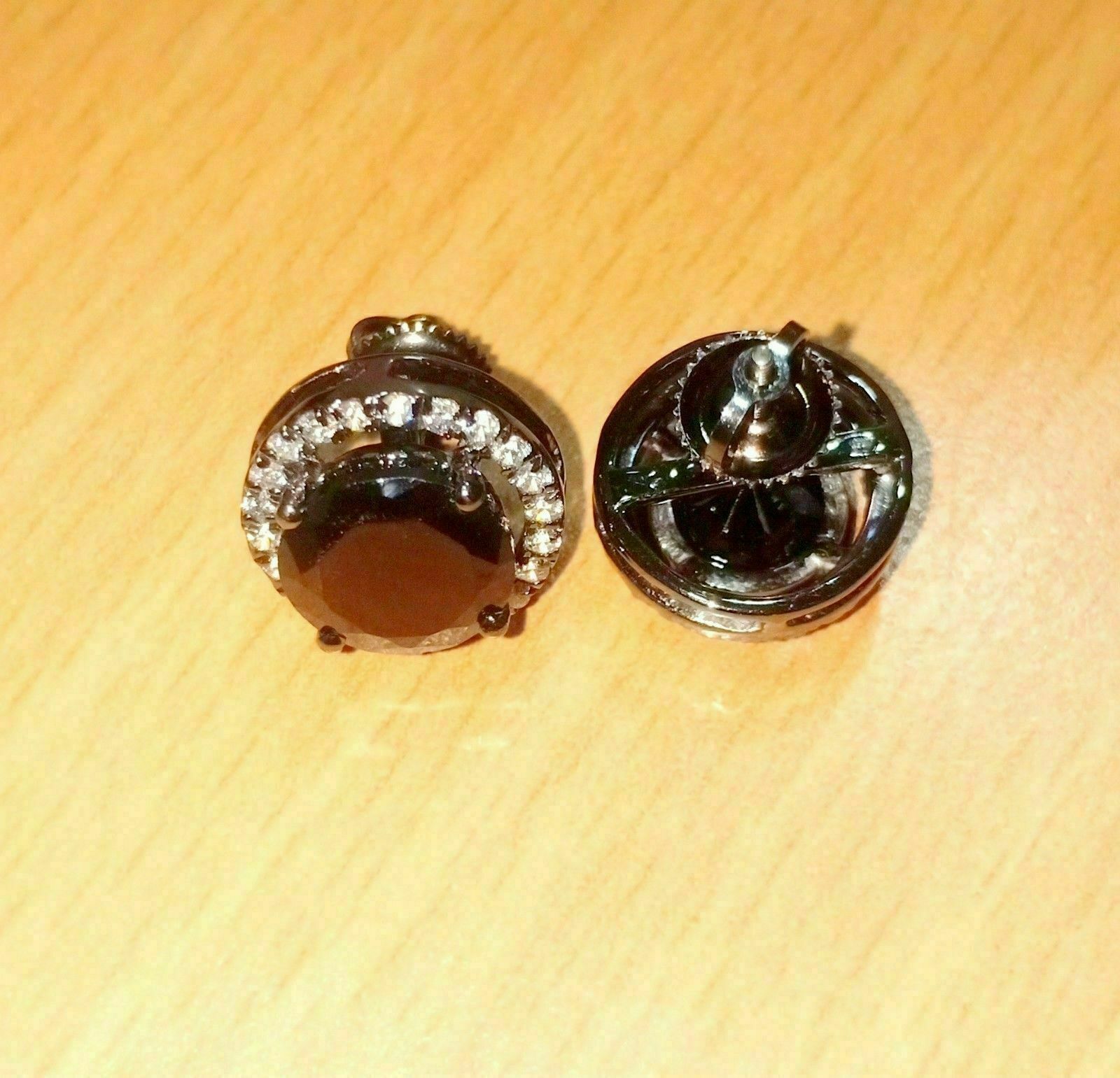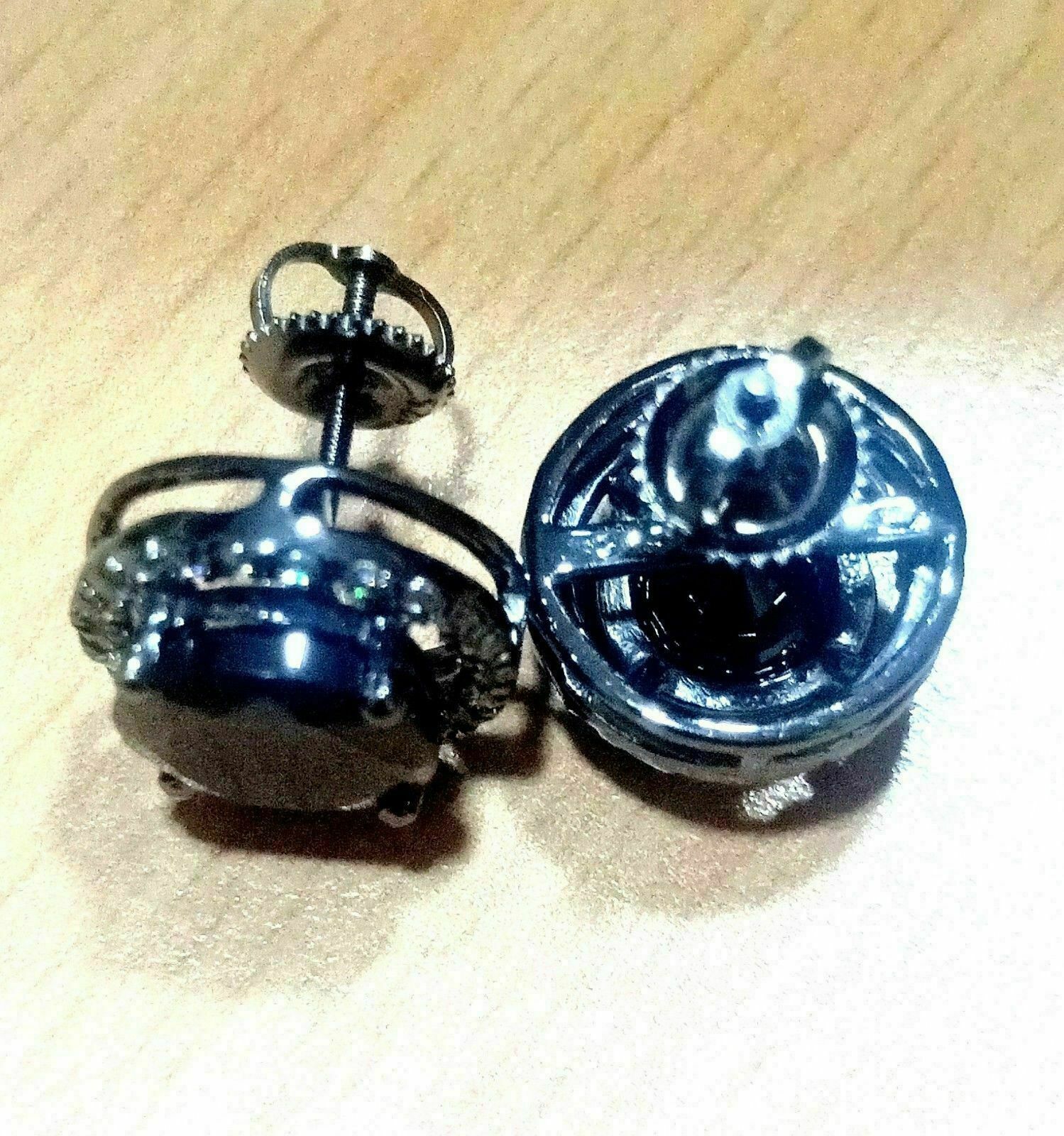 4.20Ct Corte Redondo Negro Diamante Halo Tuerca Pendientes En 14K Acabado Dorado