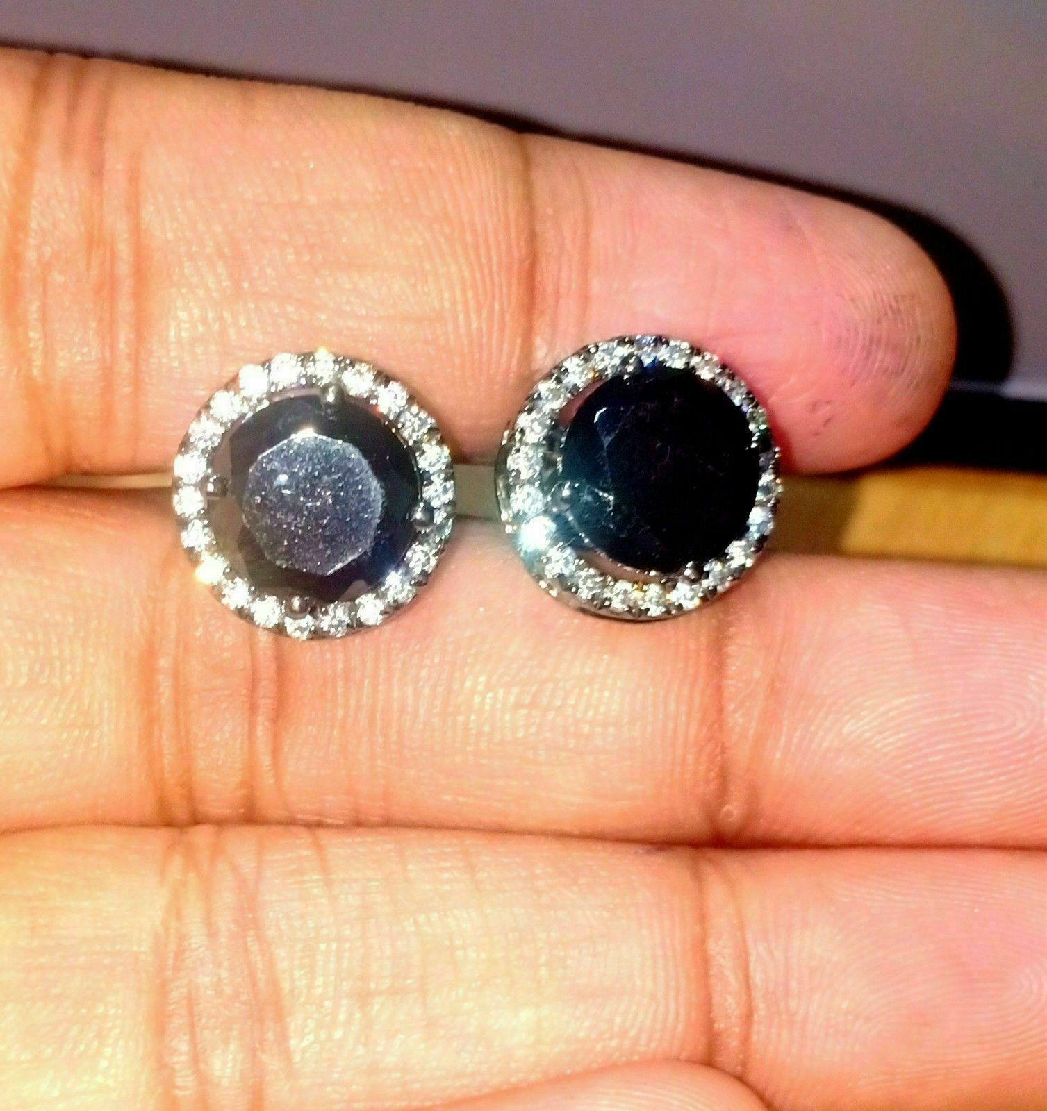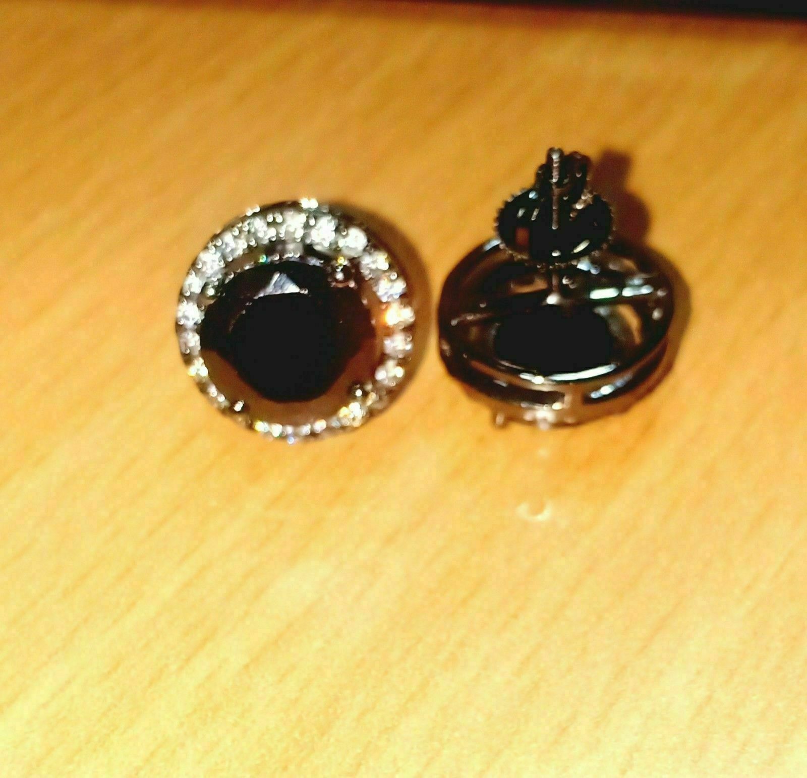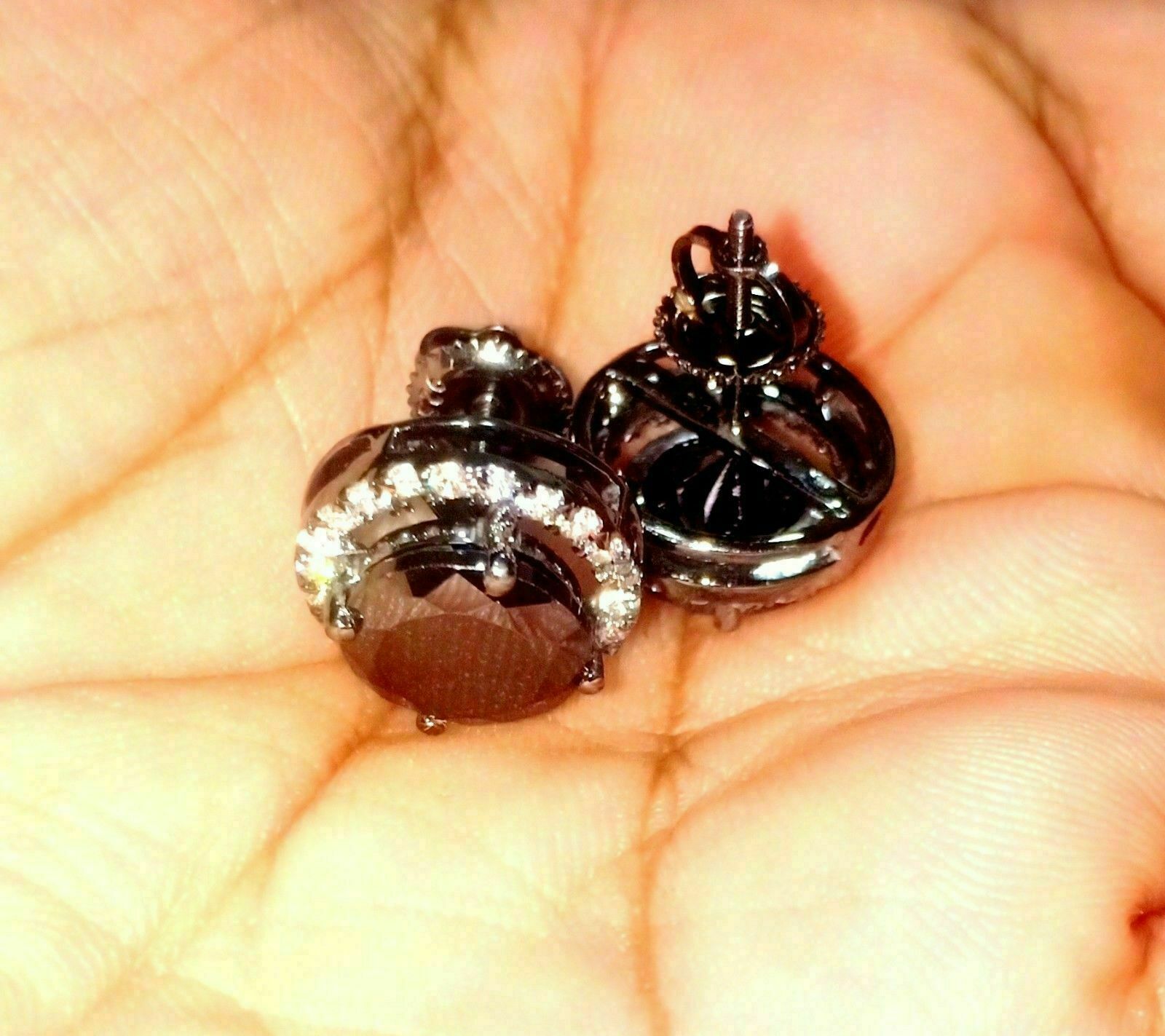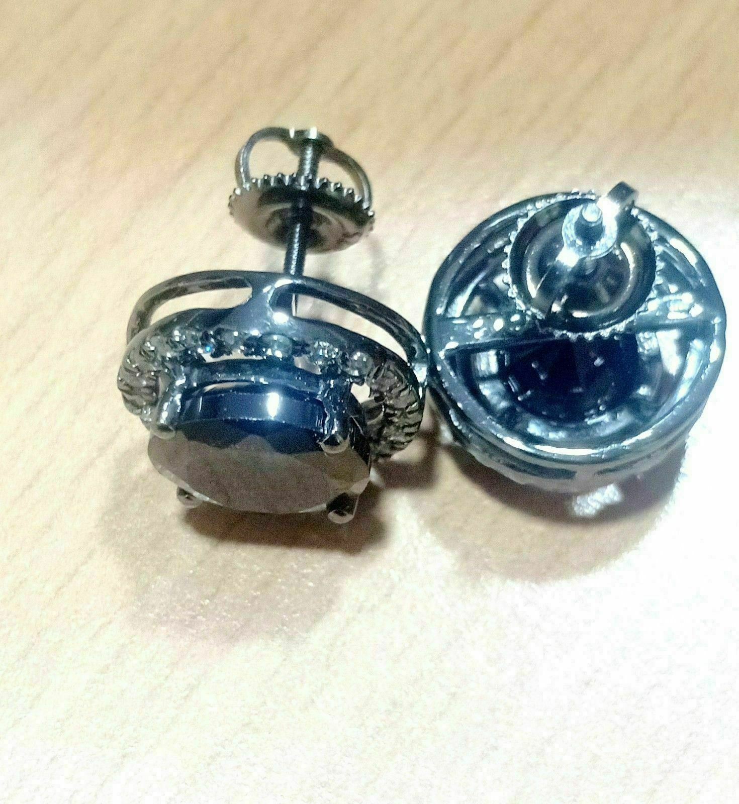 4.20Ct Corte Redondo Negro Diamante Halo Tuerca Pendientes En 14K Acabado Dorado