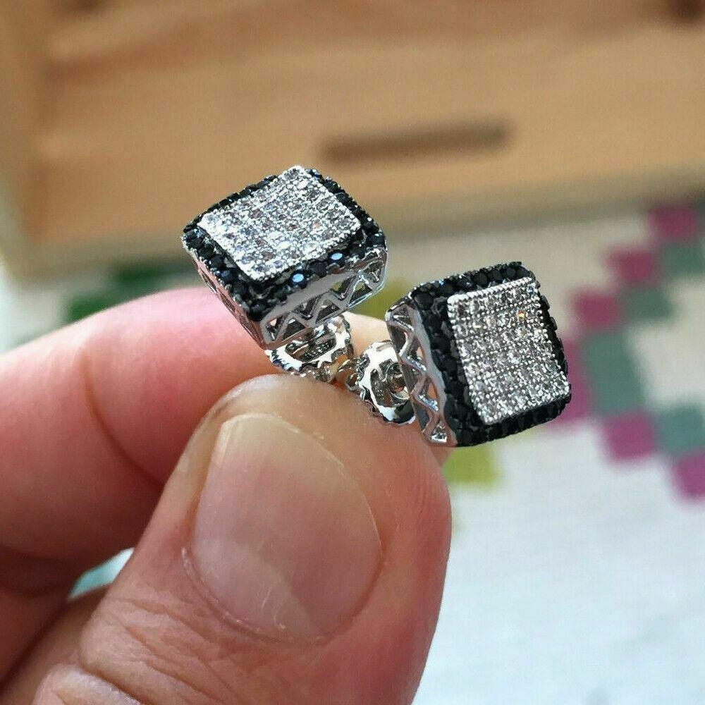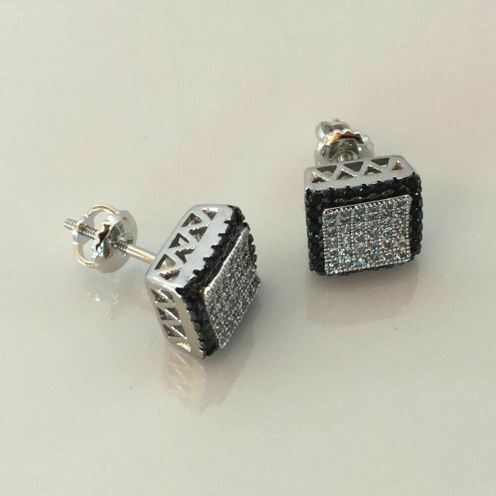 Delicated 2.20Ct Redondo Negro Diamante en Racimo Pendientes 14K Blanco Oro Todo