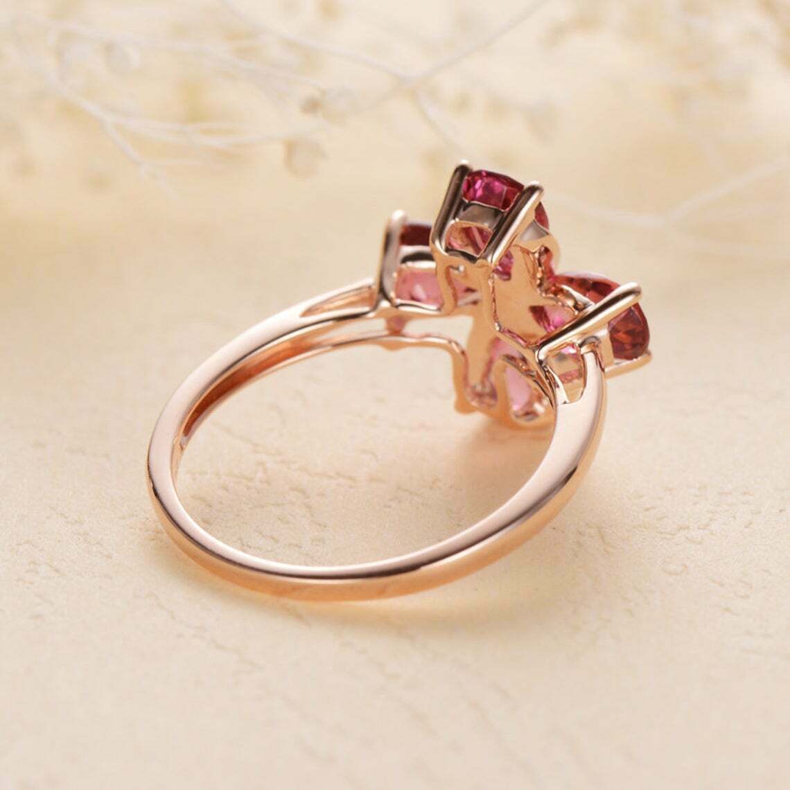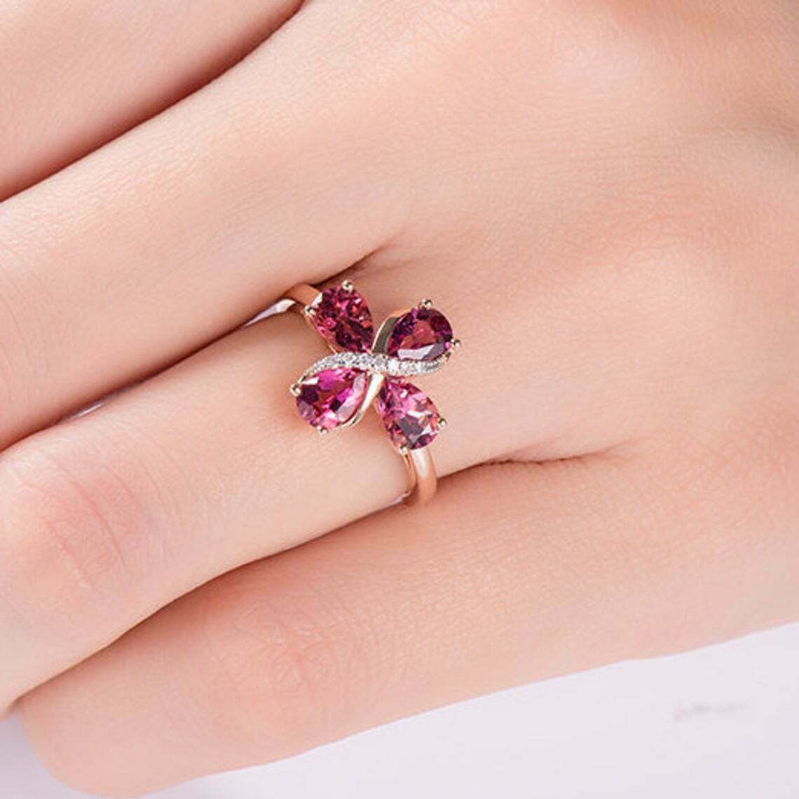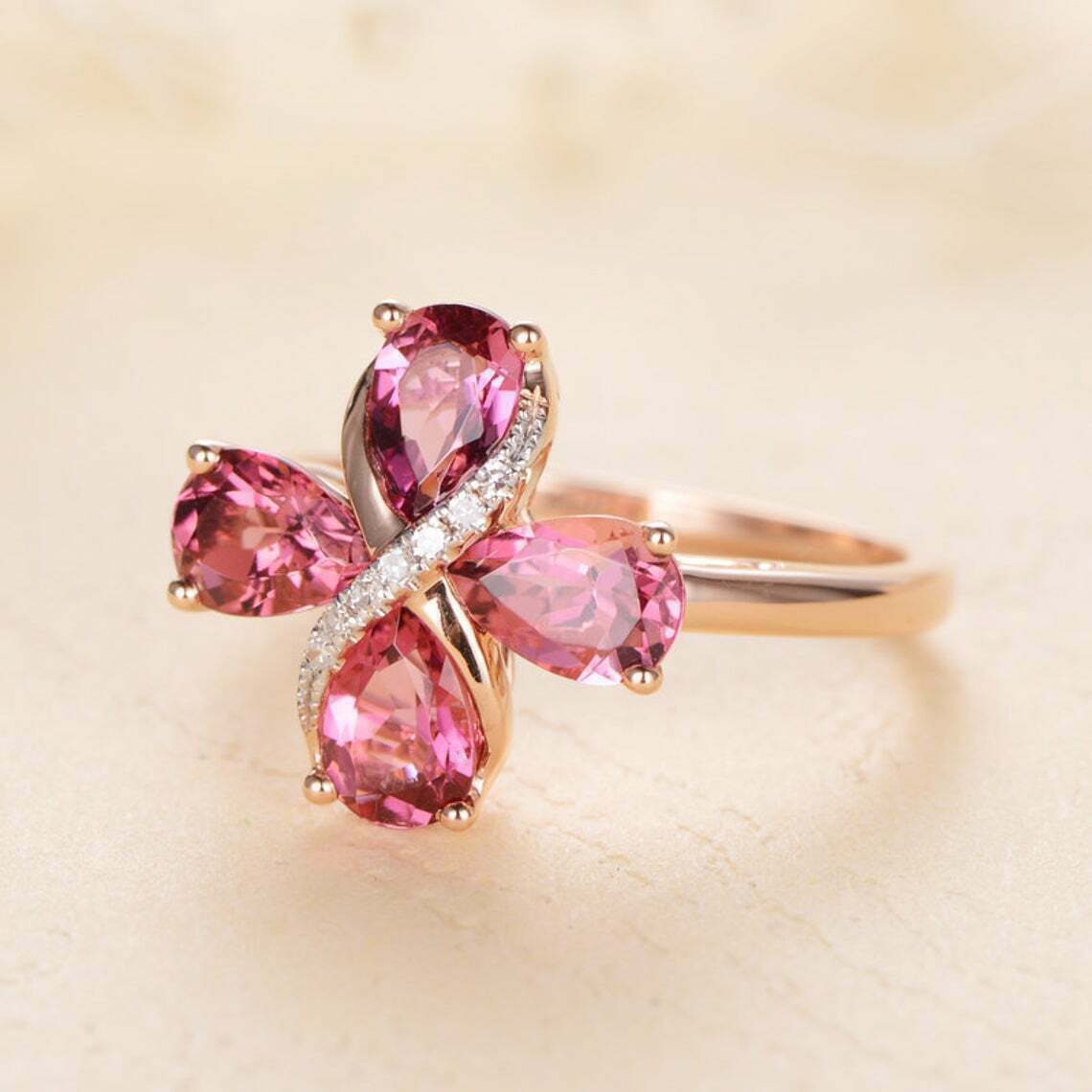 3CT Taglio a Pera Rosa Zaffiro e Diamante Fiore Forma Anello 14K Finitura Oro