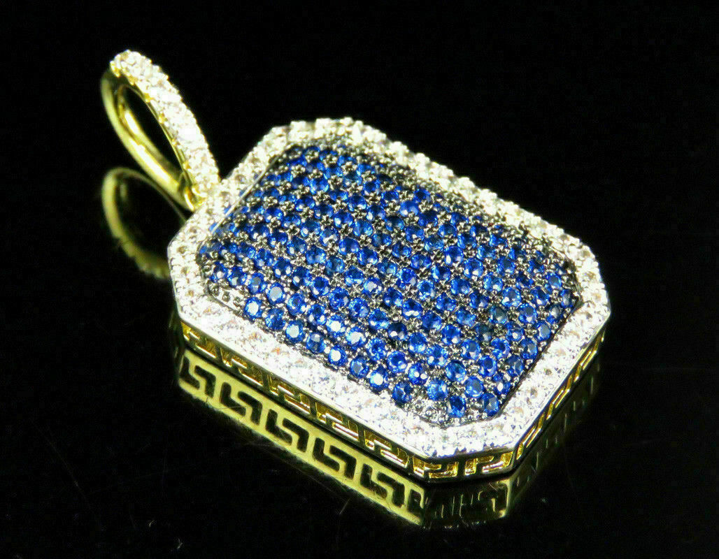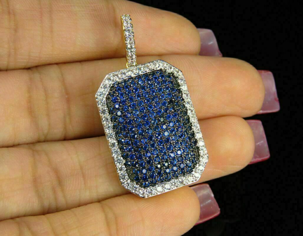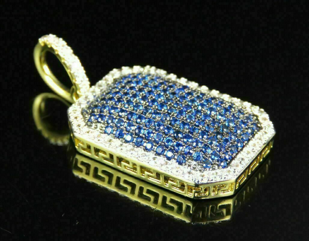 2.90Ct Rund Schliff Blauer Saphir Herren Hundemarke Anhänger Kette 14k Gelb Gold