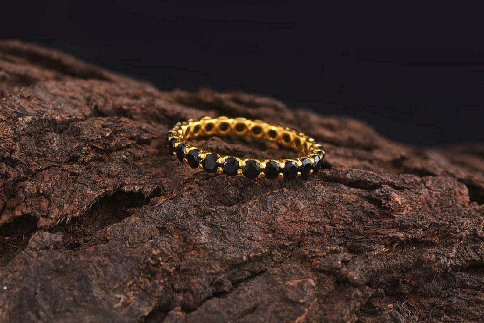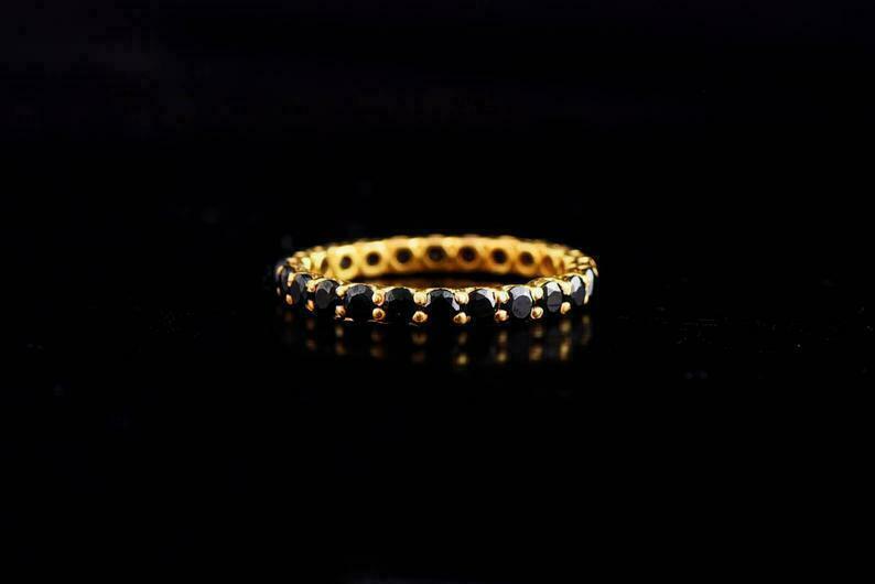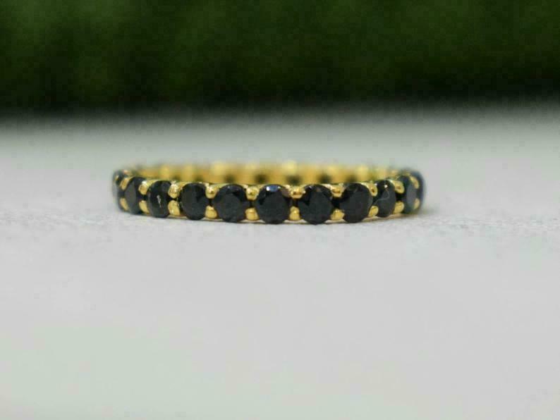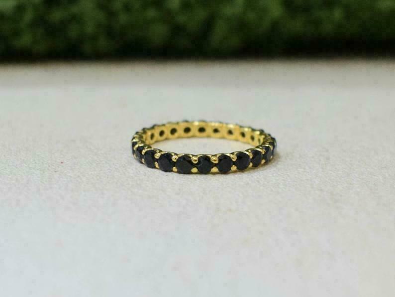 1Ct Rund Schliff Schwarz Diamant Ehering Volle Ewigkeit 14k Gelbgold Finish