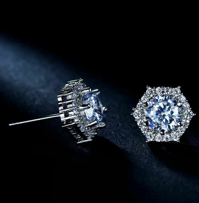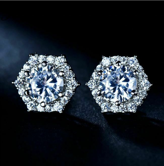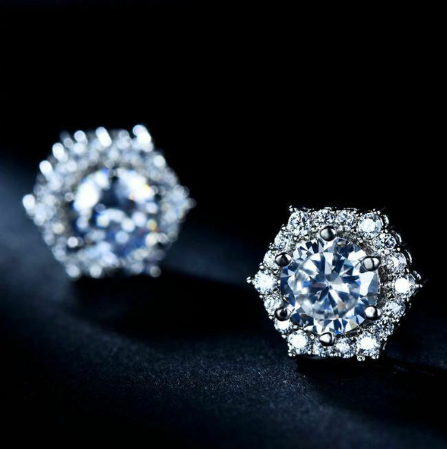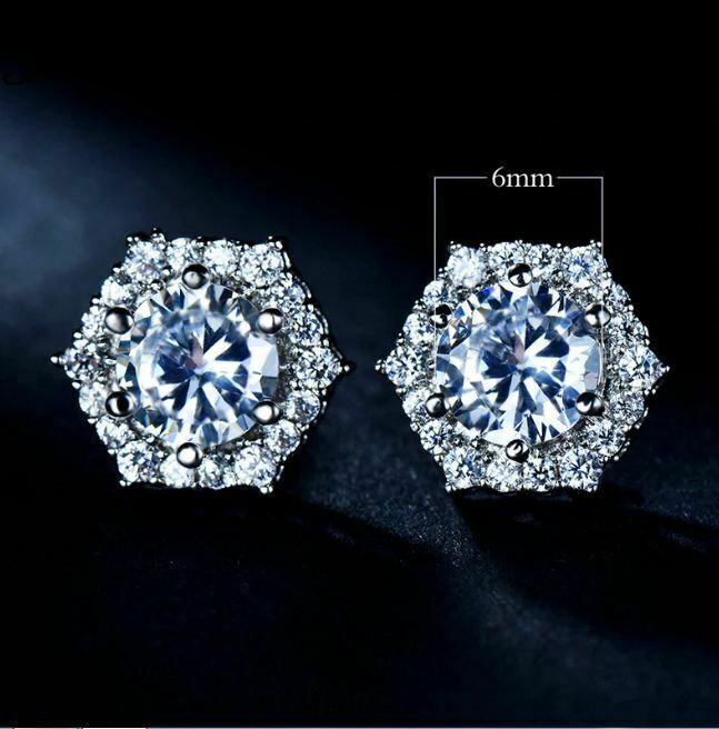 3.40Ct Rond Brillant Coupe VVS1 Diamant Halo Clou Boucles 14K or Blanc Finition