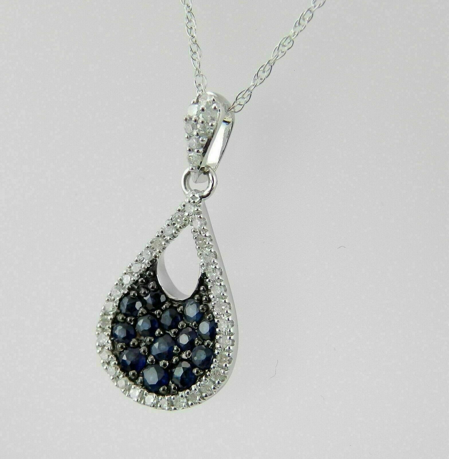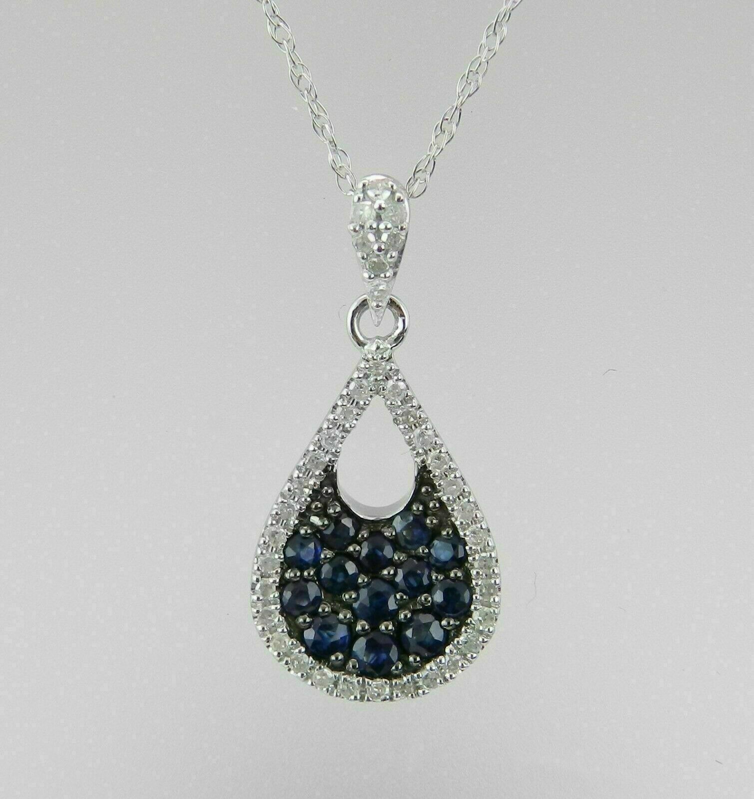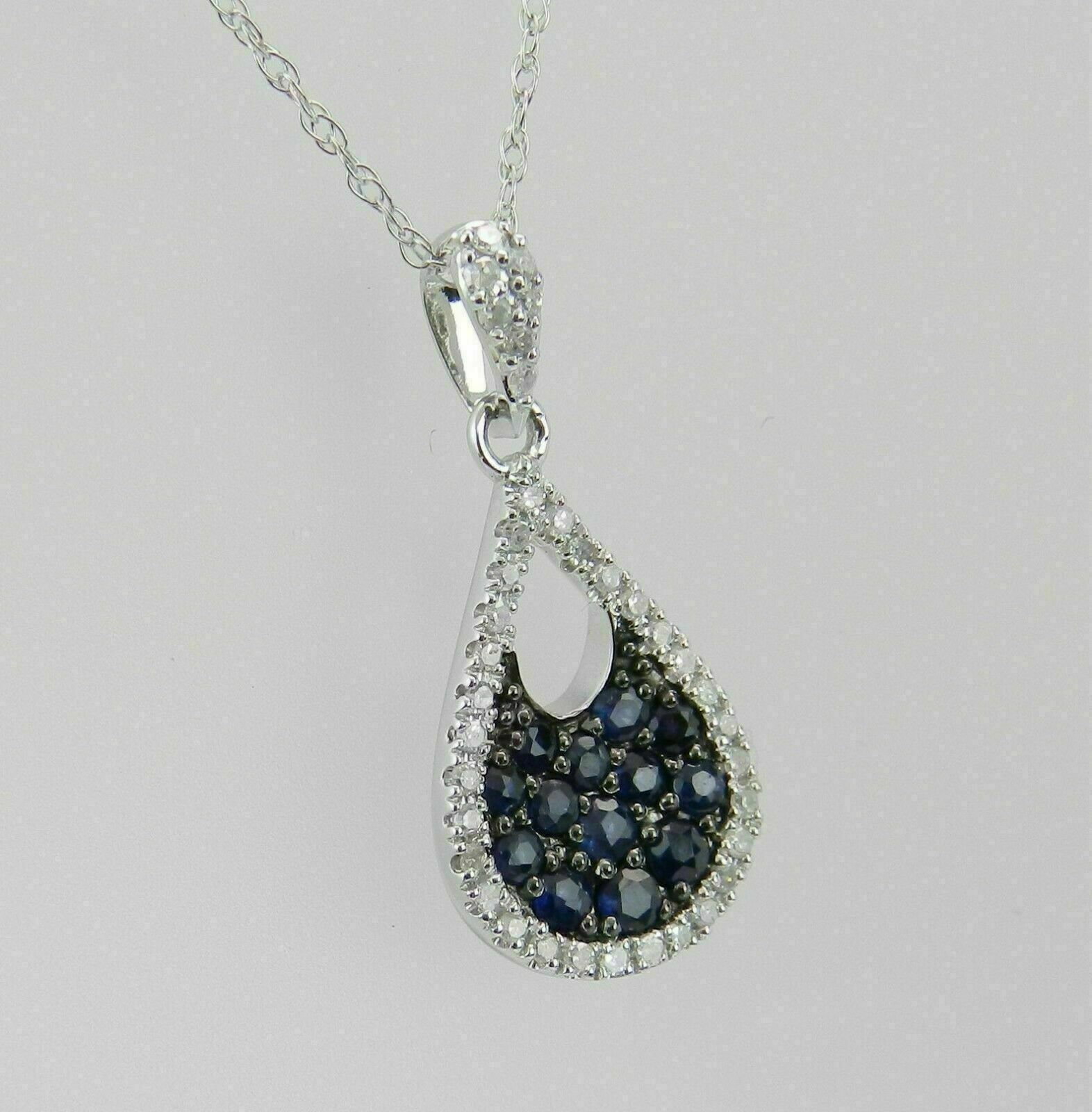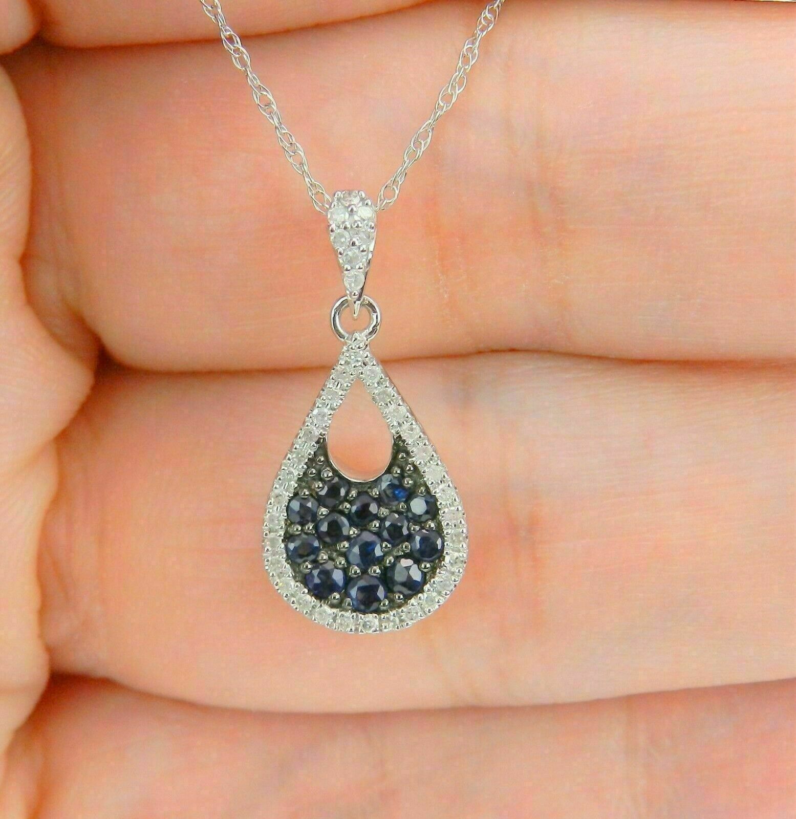 1Ct Rund Schliff Blau Saphir Cluster Anhänger 14K Weißgold Finish mit Kette
