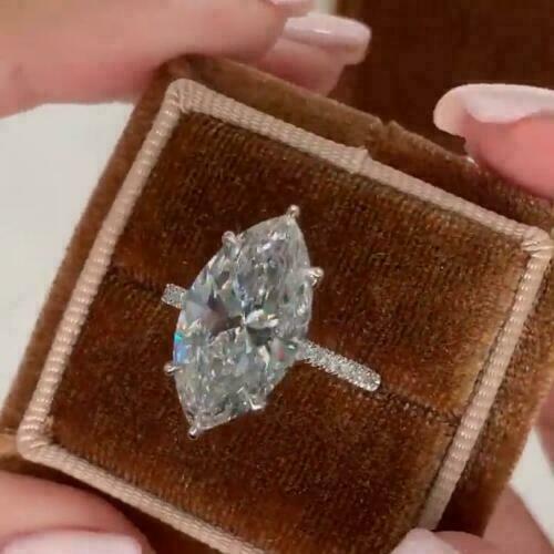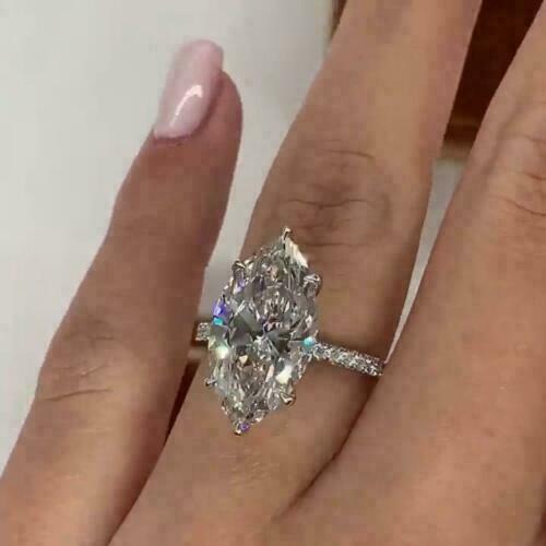 4Ct Marquise Schnitt VVS1/D Diamant Solitaire Verlobungsring 14K Weiß Gold Lack