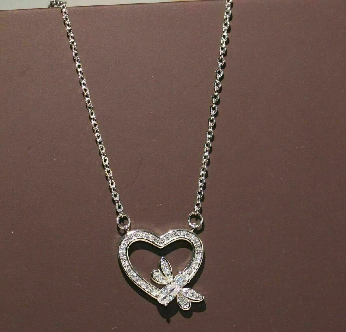 2Ct Coupe Ovale Diamant Miel Bee Forme Coeur Pendentif 14k or Blanc Finition