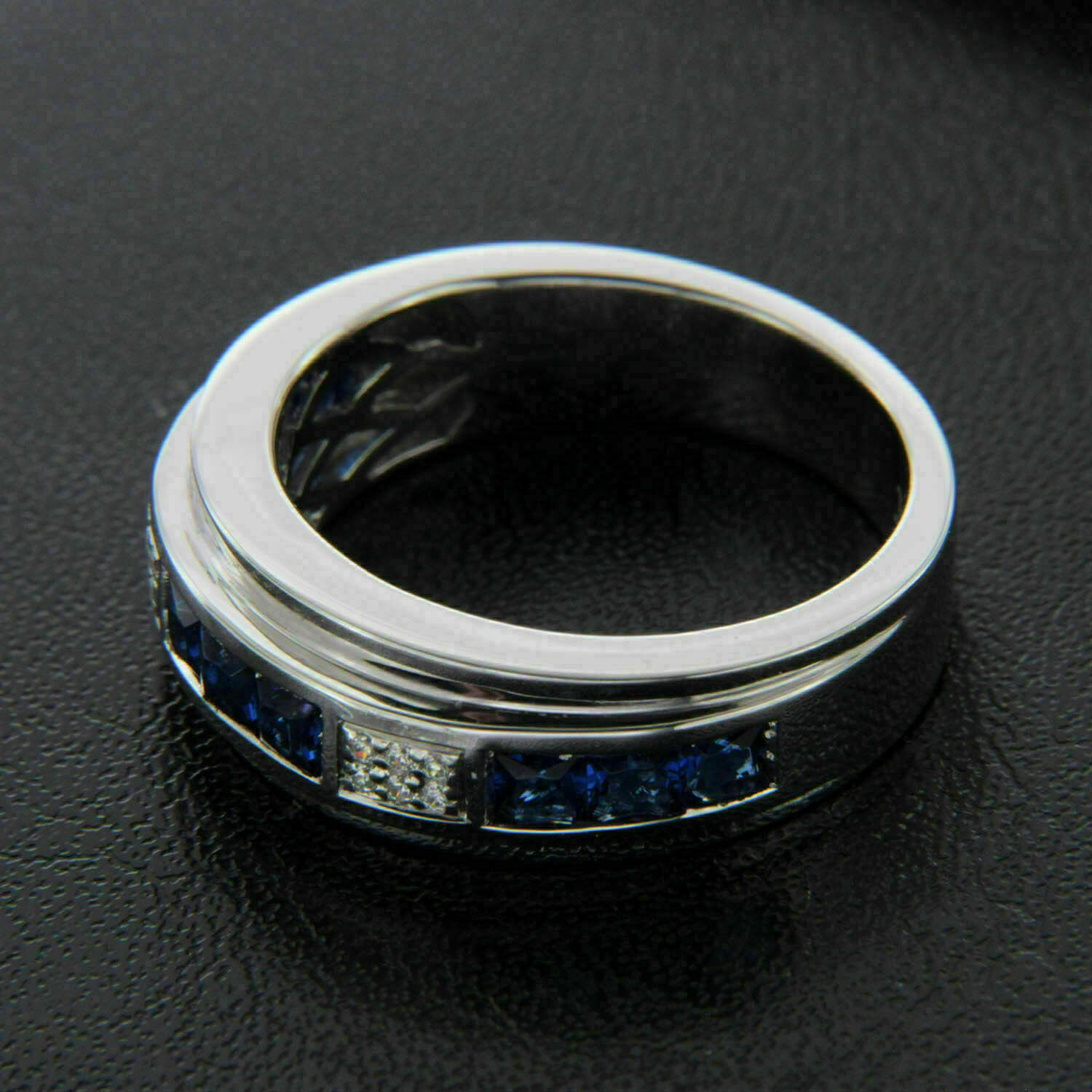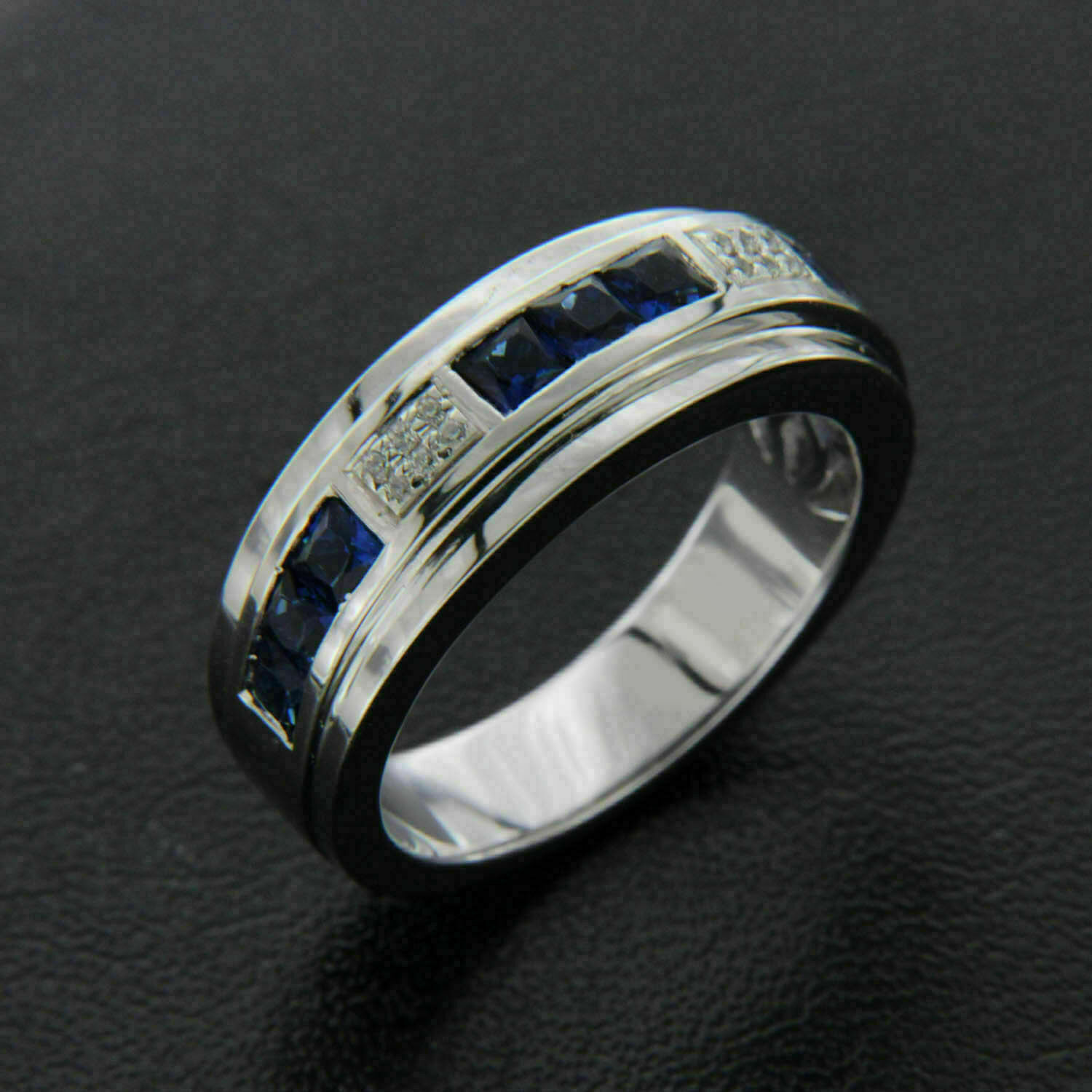 3Ct Taglio Princess Zaffiro Blu & Diamante Carino Fede Nuziale 14K Oro Bianco