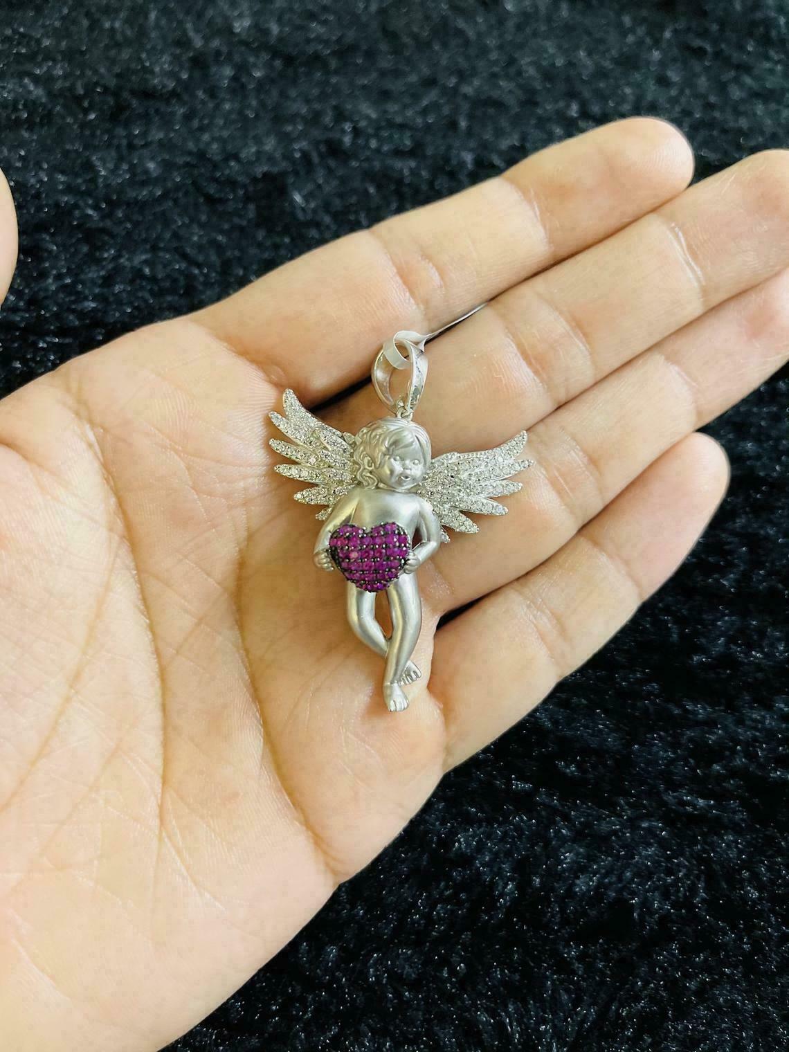 2Ct Diamante Angelo con Cuore Hip Hop Ciondolo 14K Bianco Finitura Oro Gratis