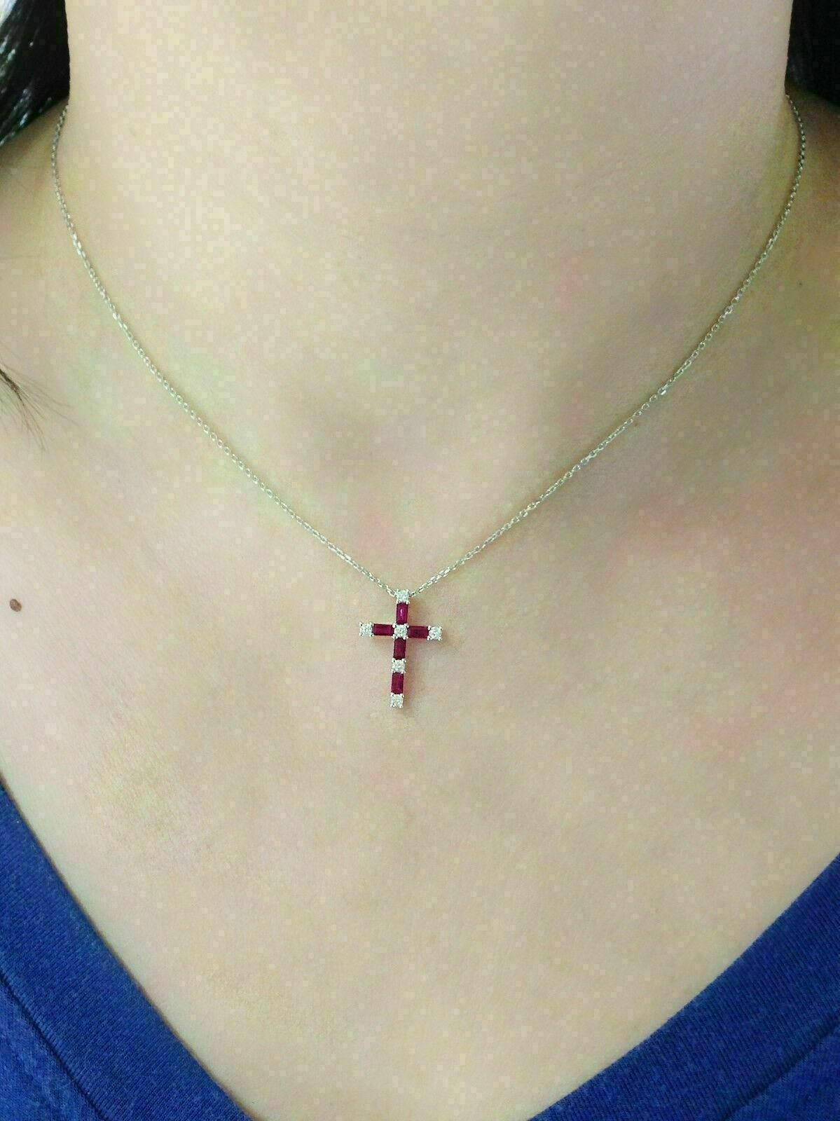 2.50Ct Baguetteschliff Rot Rubin Kreuzanhänger 14K Weißgold Finish Free 18 Kette