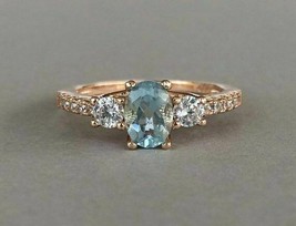 2Ct Coupe Ovale Bleu Aigue-Marine Trois Pierre Fiançailles Bague 14k or Rose