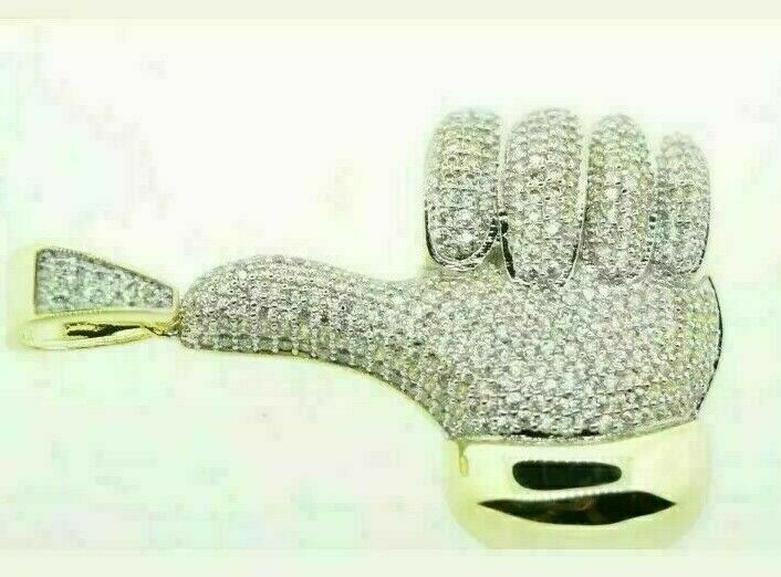 2Ct Pflastern Diamant Thumbs Up Hip Hop Anhänger 14K Gelbgold Finish Free Kette