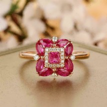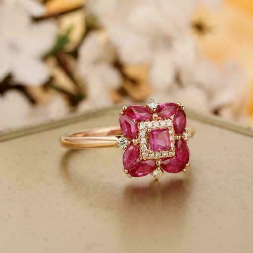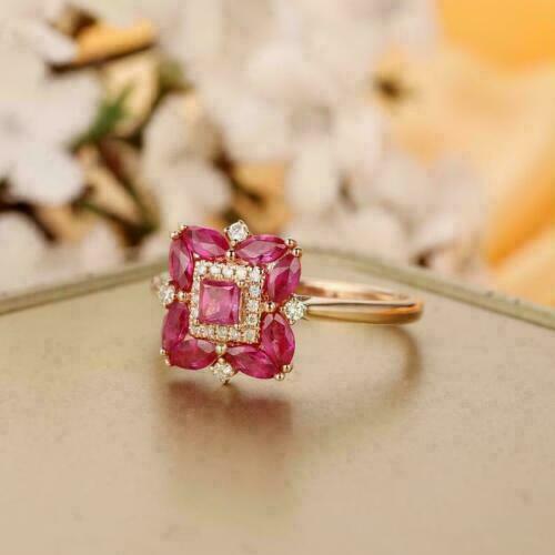 1.60Ct Princesse Coupe Rose Rubis Diamant Halo Fiançailles Bague 14K Finition or