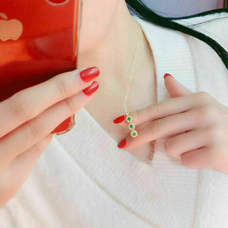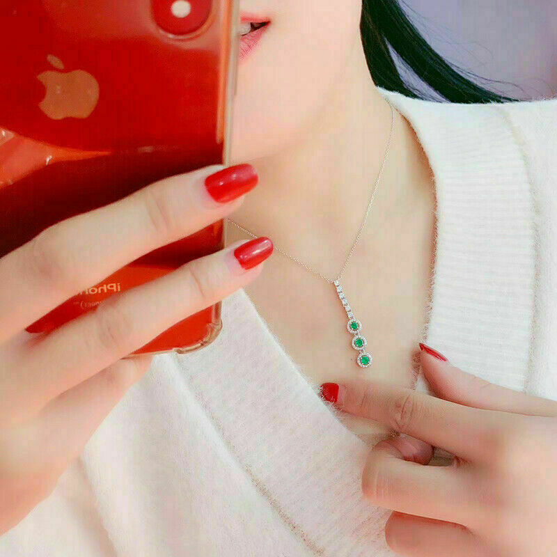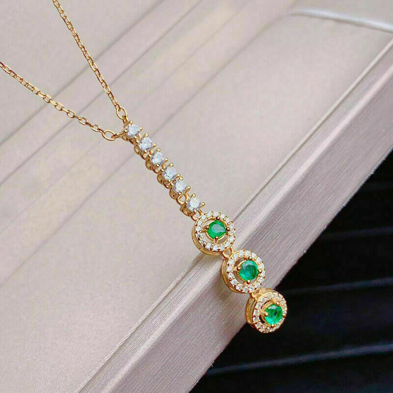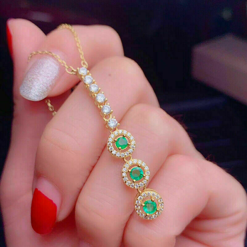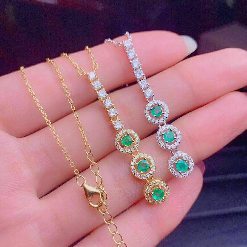2Ct Corte Redondo Esmeralda Verde Viaje Colgante 14K Yellowgold Acabado 18" Free