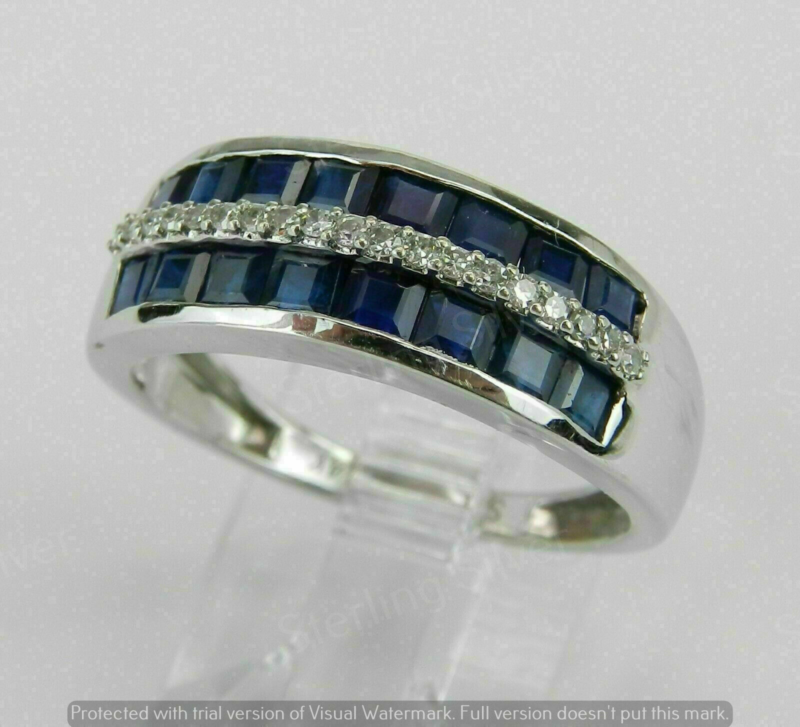3Ct Corte Princesa Zafiro Azul&Diamante Anillo de Boda 14K Oro Blanco Sobre