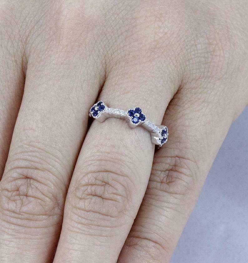 1.20Ct Rund Schliff Blau Saphir Ehering Halbe Ewigkeit 14k Weißgold Finish