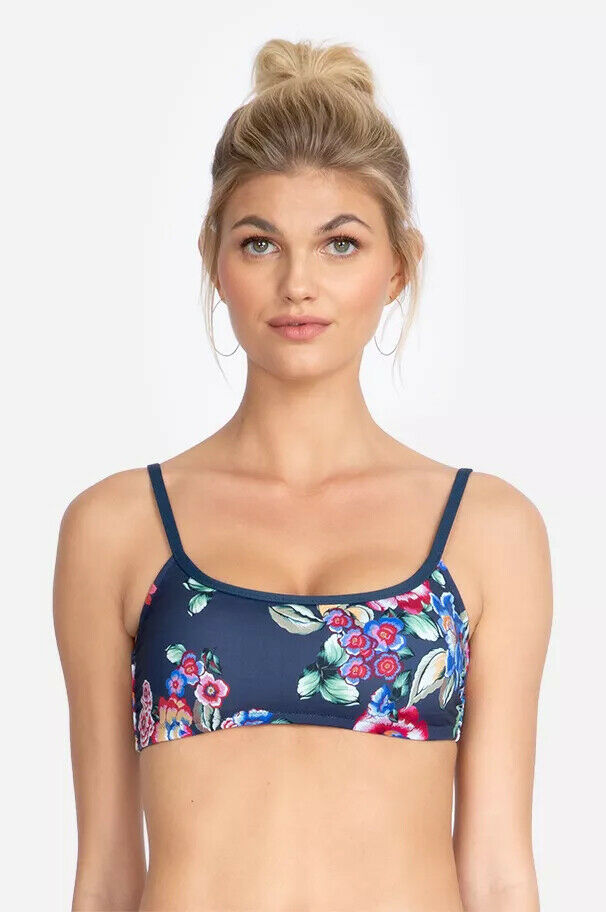 NWT JOHNNY WAS XS floral maya top swimsuit bikini navy blue multi $108 designer
