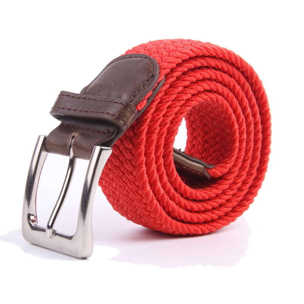 Red Braided Belts Canvas Elastic Fabric Woven Stretch