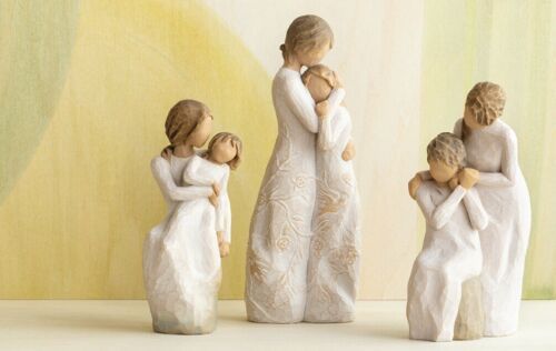Willow Tree sculptural art forms beautifully express love, closeness, healing, courage, hope… all the emotions of a life well lived. Artist Susan Lordi hand carves the original of each figure from her studio in Kansas City Missouri. Pieces are cast from her original carvings, and individually painted by hand. Expression is revealed through gestures only… a tilt of the head, placement of the hands, a turn of the body. The simplicity of form and absence of facial features signify Willow Tree. It is Susan’s hope that these pieces be meaningful to both giver and receiver.
