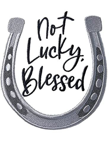 Custom Not Lucky, Blessed Horseshoe Portrait embroidery patch. Absolutely superior quality patches which can be ironed or sewed on any garment. This patch is made of the finest embroidery thread and cotton base. Finest quality money can buy. Steps to iron it on the garment are listed below: 1. Set Iron to Cotton 400 degrees, for one minute. 2. Thoroughly iron area of garment where patch will be placed. 3. Spray water lightly on the back. Position your patch where you desire, Place it on garment, embroidery facing up. 4. Place cloth or light towel over patch and using a slow circular motion, press firmly for 30 seconds. 5. Turn garment inside out, and iron the back of the the patch for 30 seconds. 6. Let cool for one minute. If edge of patch can be lifted, repeat step 5.