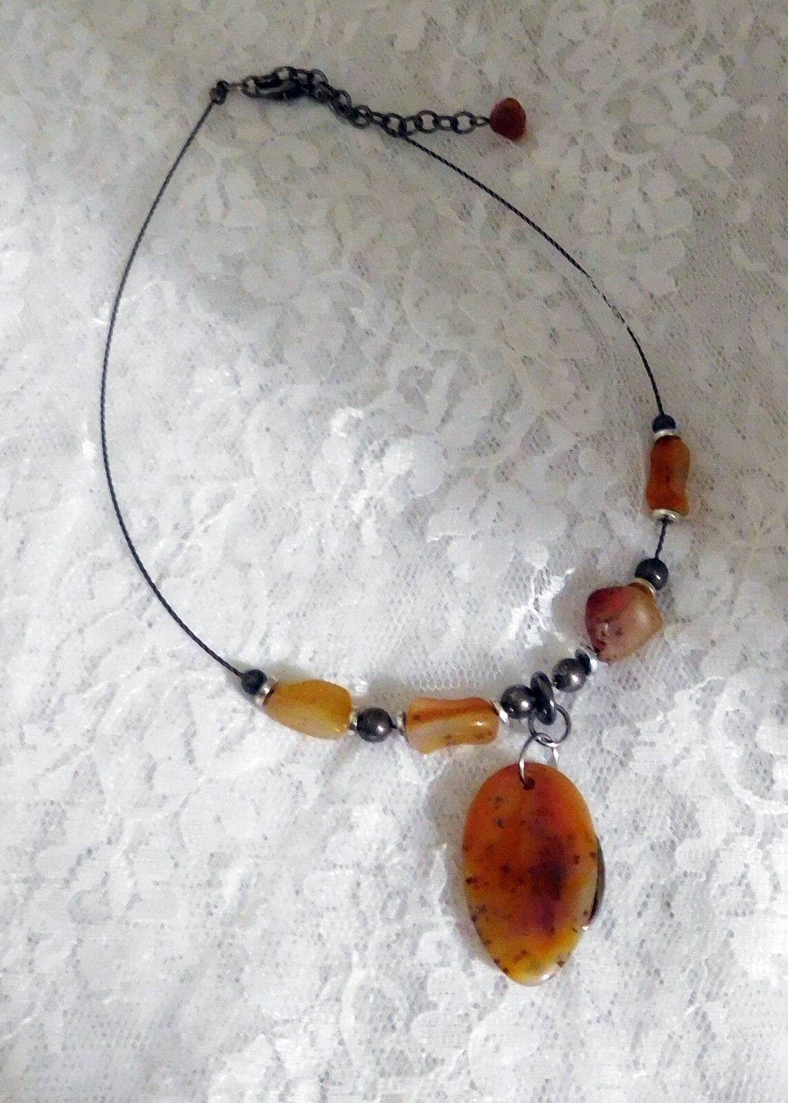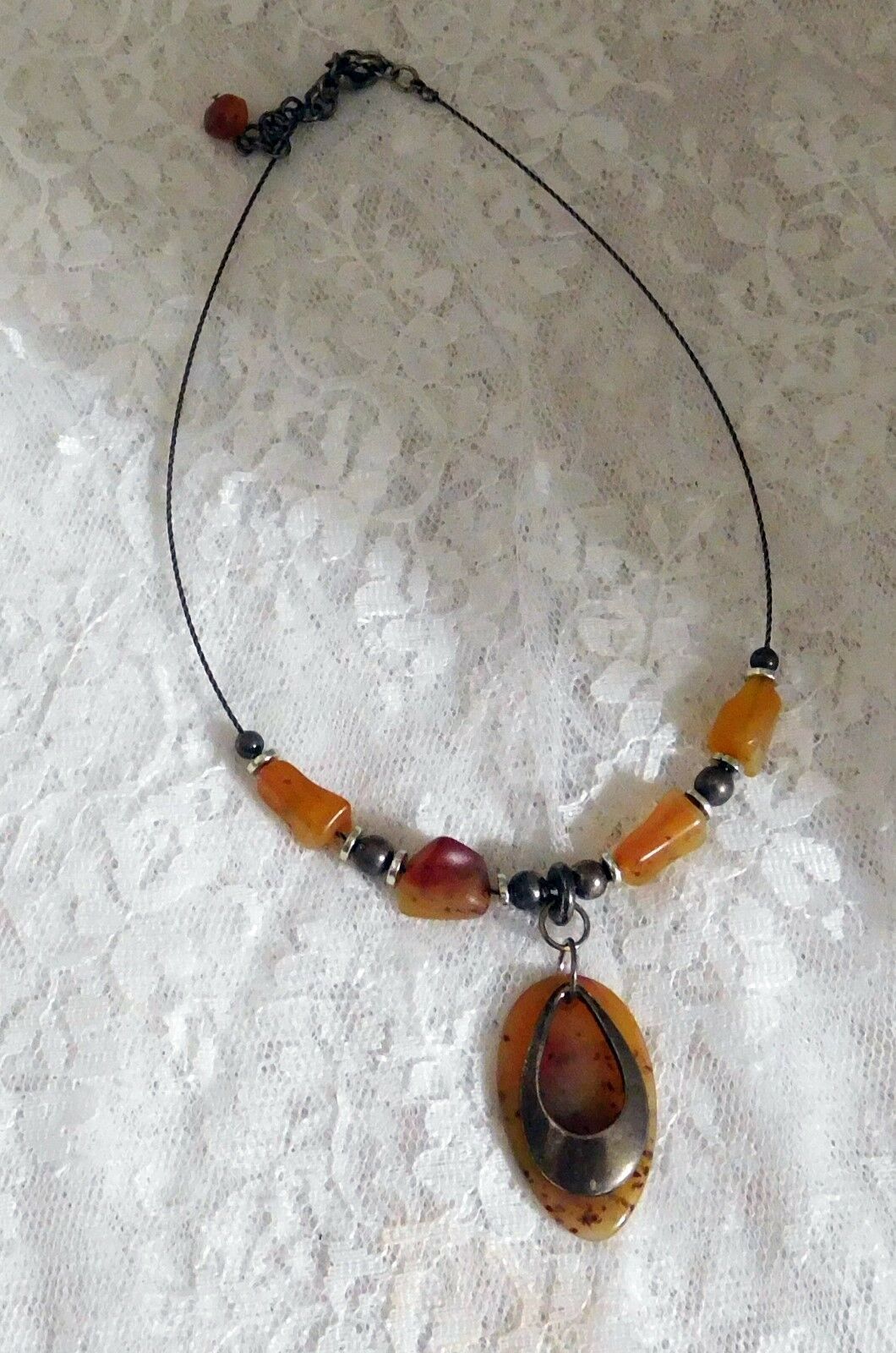 Vintage Silvertone Amber Colored Bead Necklace - 18 1/2" Unique Beautiful! Very Good Condition - See photos for further description. We purchased this from an estate sale.