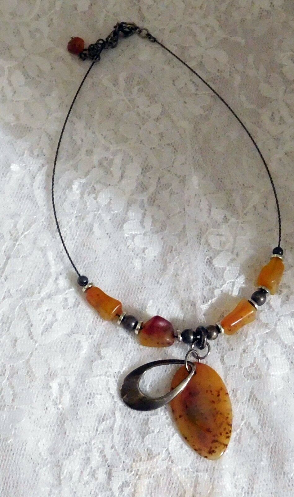 Vintage Silvertone & Amber Colored Bead Necklace 18 1/2" Unique & Beautiful!