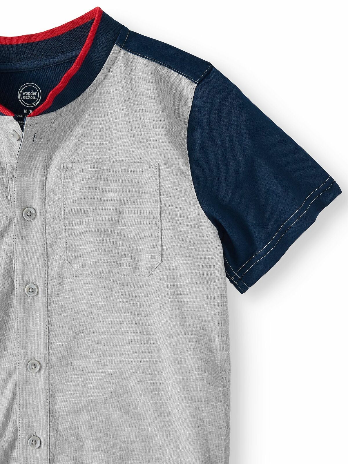 Your son will love this 2 piece shirt set! The fun color blocked woven contrasts so well with the graphic t-shirt. He can even mix and match both pieces to create different looks!2 piece shirt set