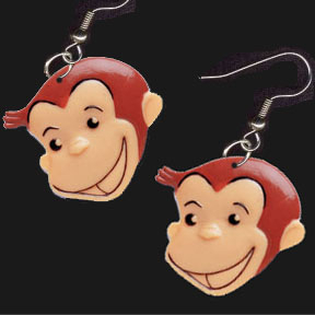 CURIOUS GEORGE EARRINGS-Monkey Chimp Funky Novelty Jewelry-FACE