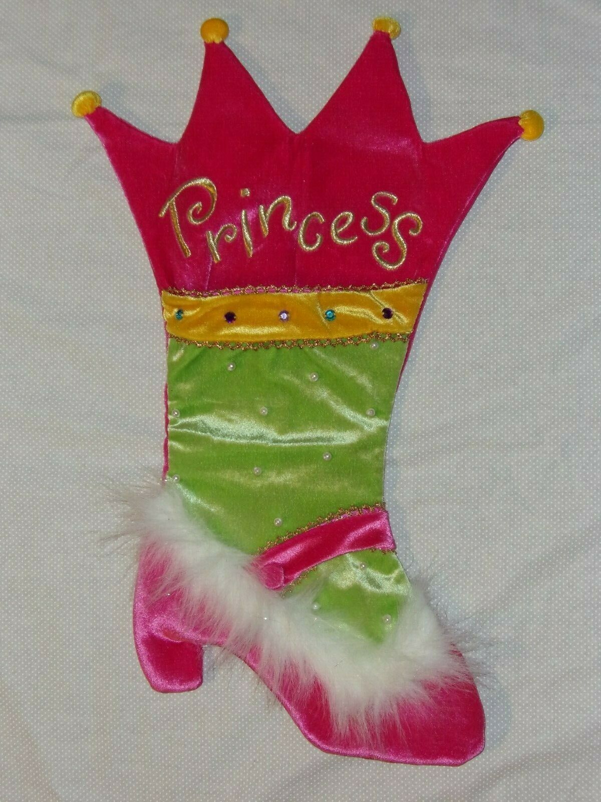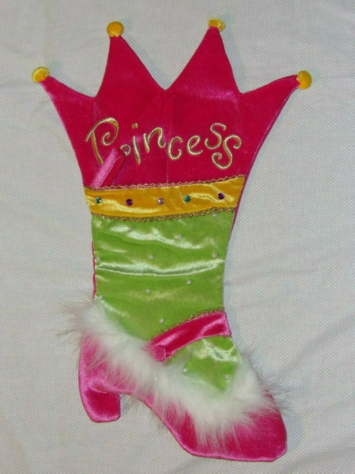 Dan Dee "Princess" Pearl Embellished Pink Shiny Velour Christmas Stocking 19"