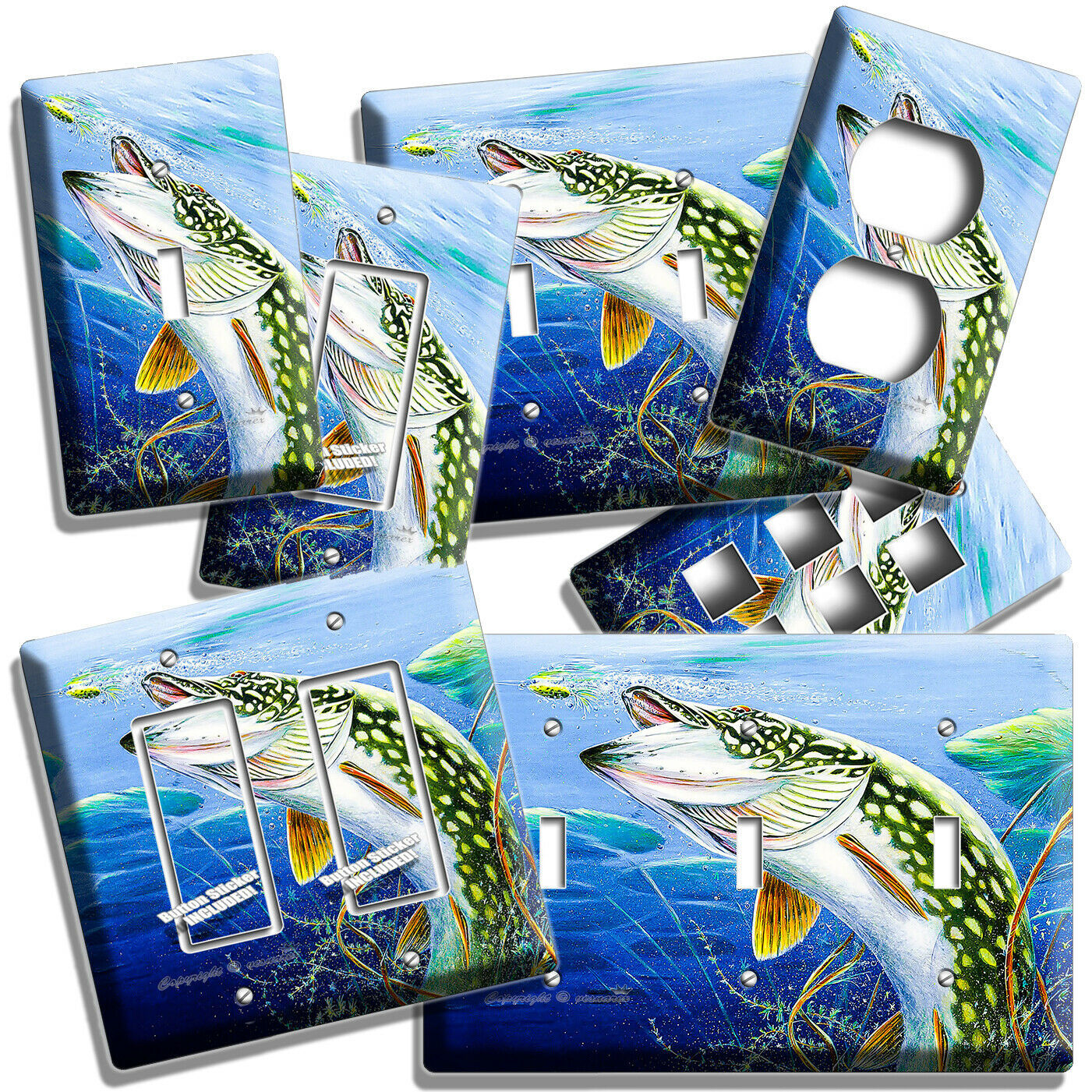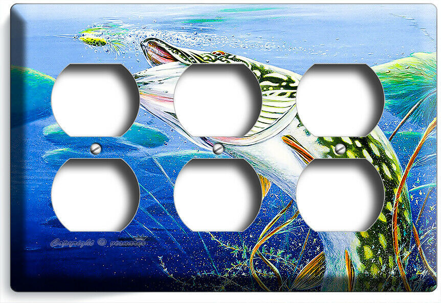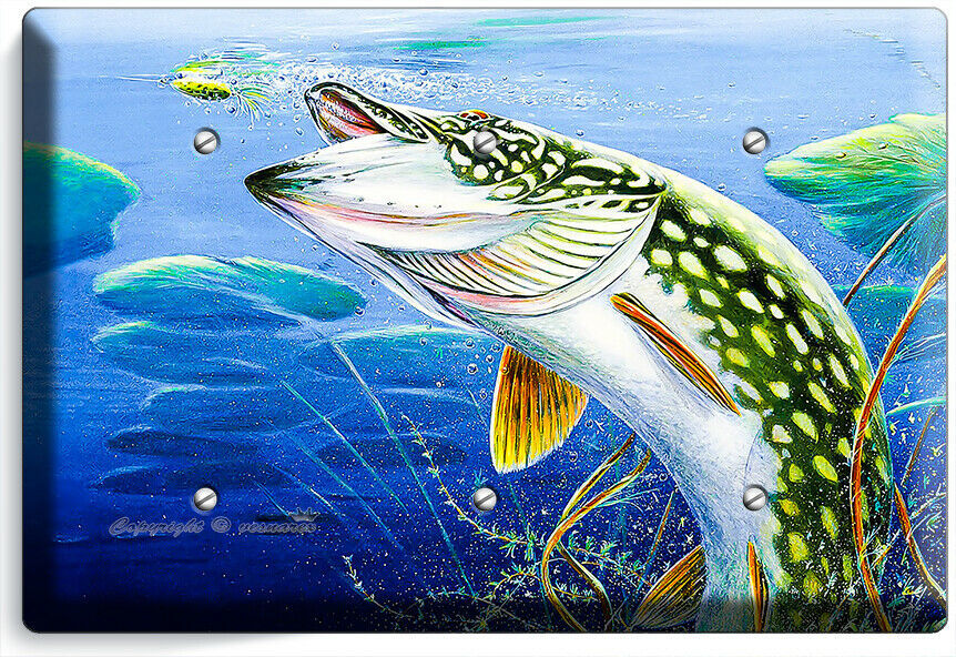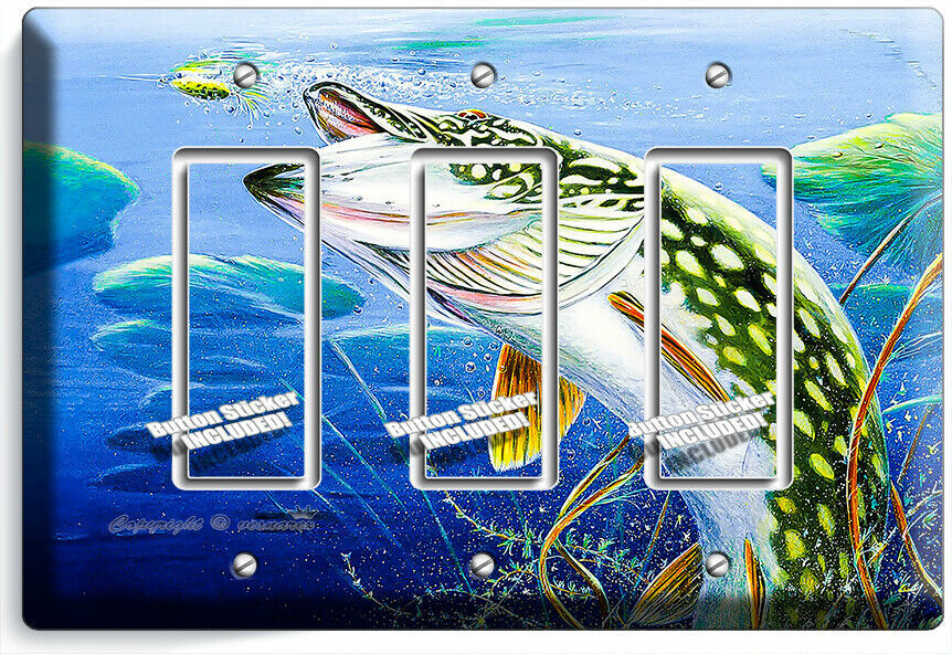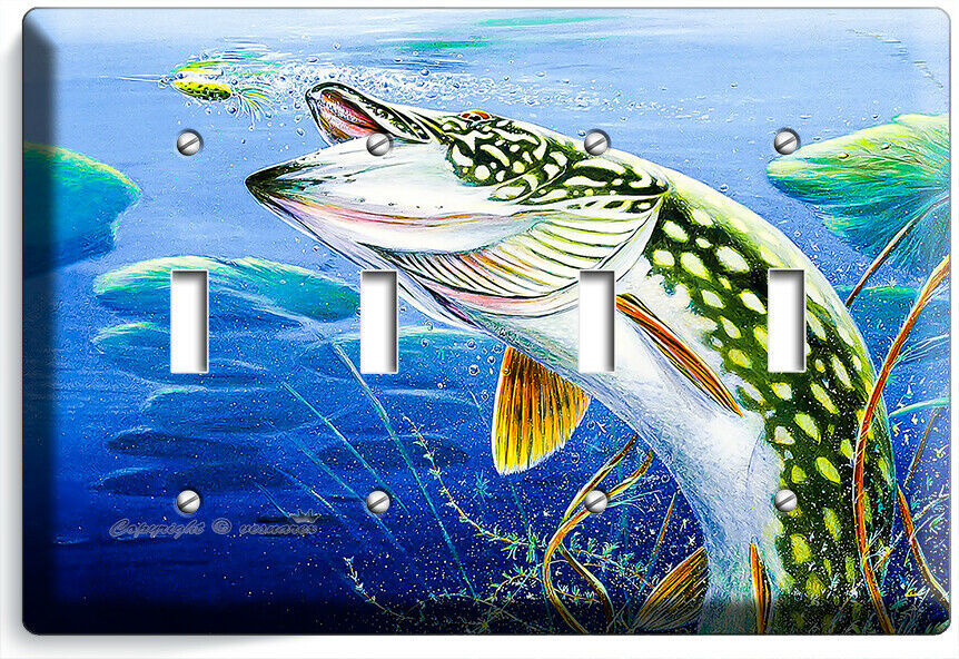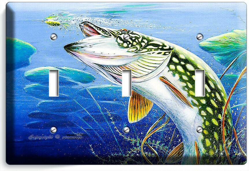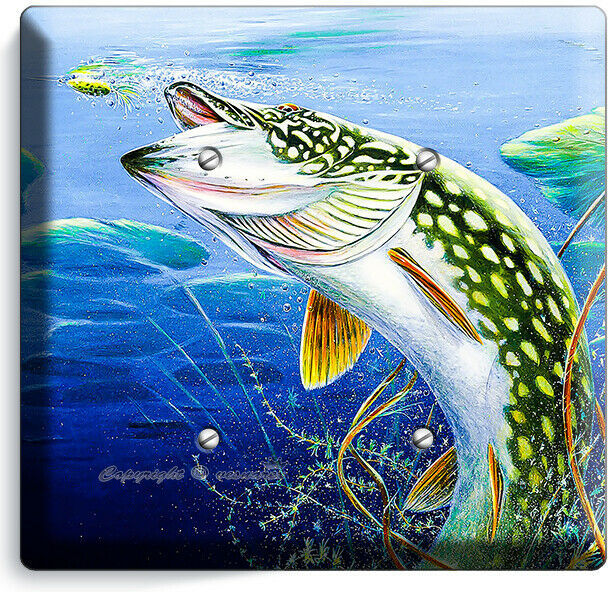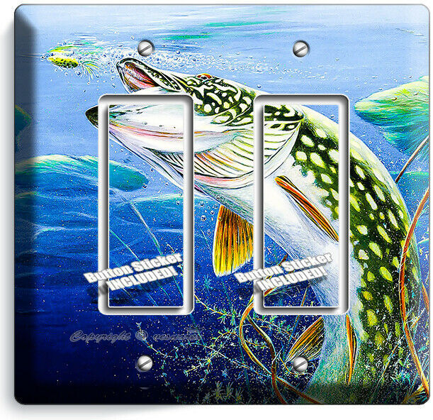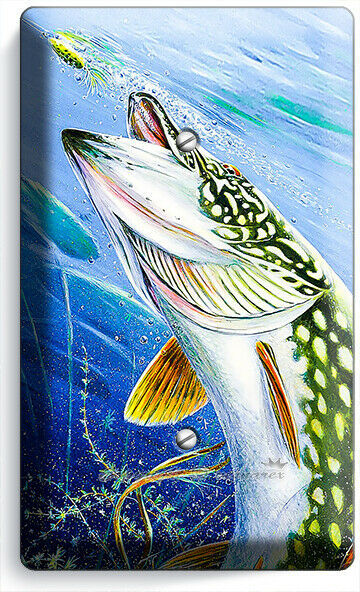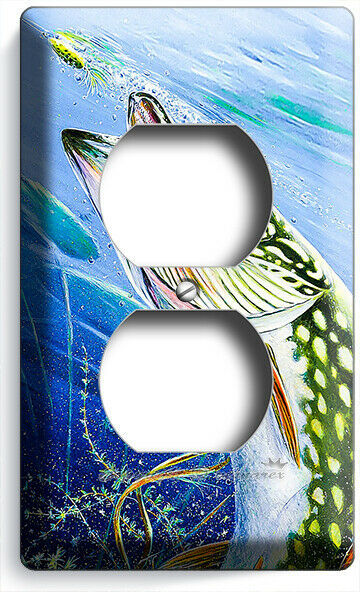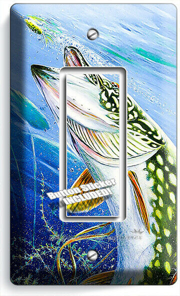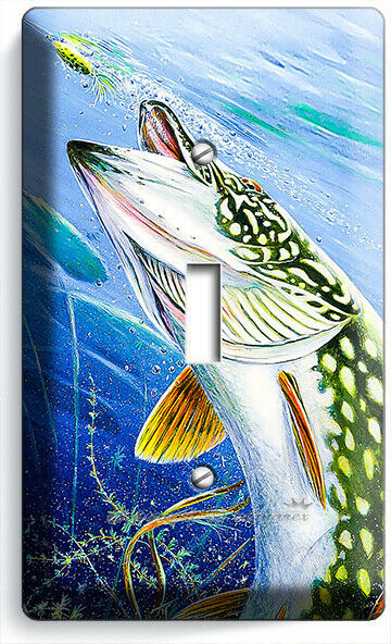 LURE FISHING FOR NORTHERN PIKE AT LAKE LIGHT SWITCH OUTLET WALL PLATE ROOM DECOR