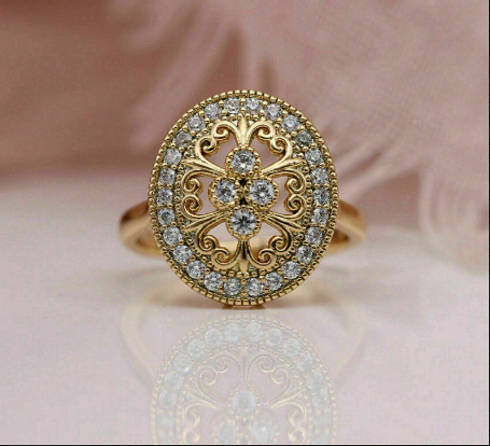 1.50Ct Diamante Antico Retro Vintage Stile Fede Nuziale 14K Finitura Oro Giallo