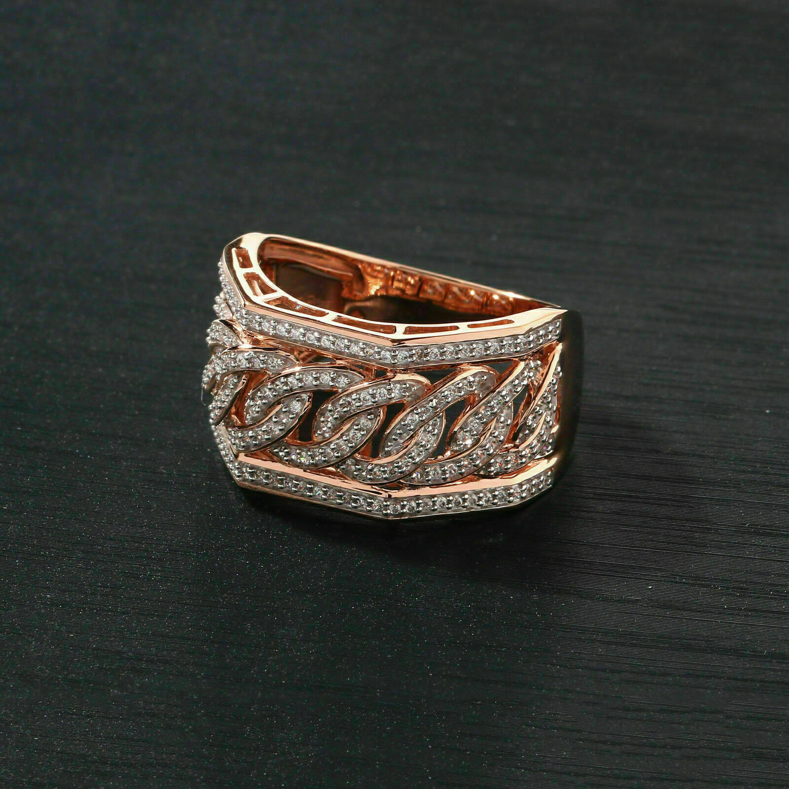 2.56Ct Diamante Hombres Compromiso Boda Estilo Banda Anillo 14K Oro Rosa Sobre
