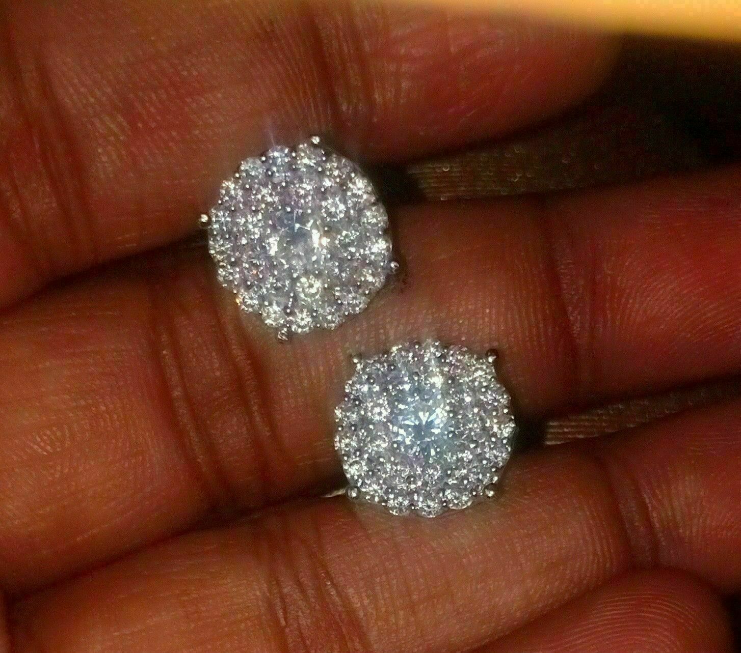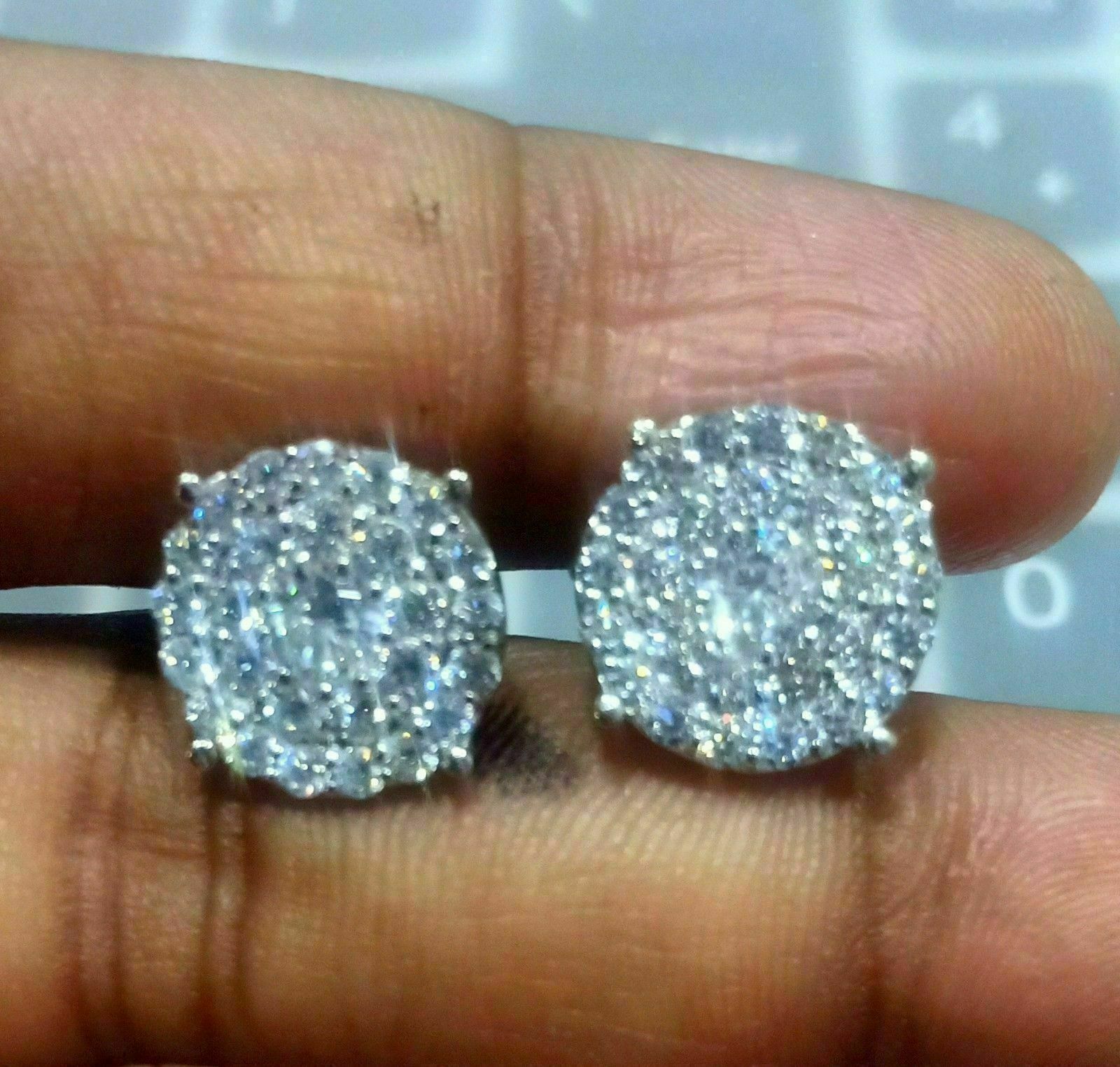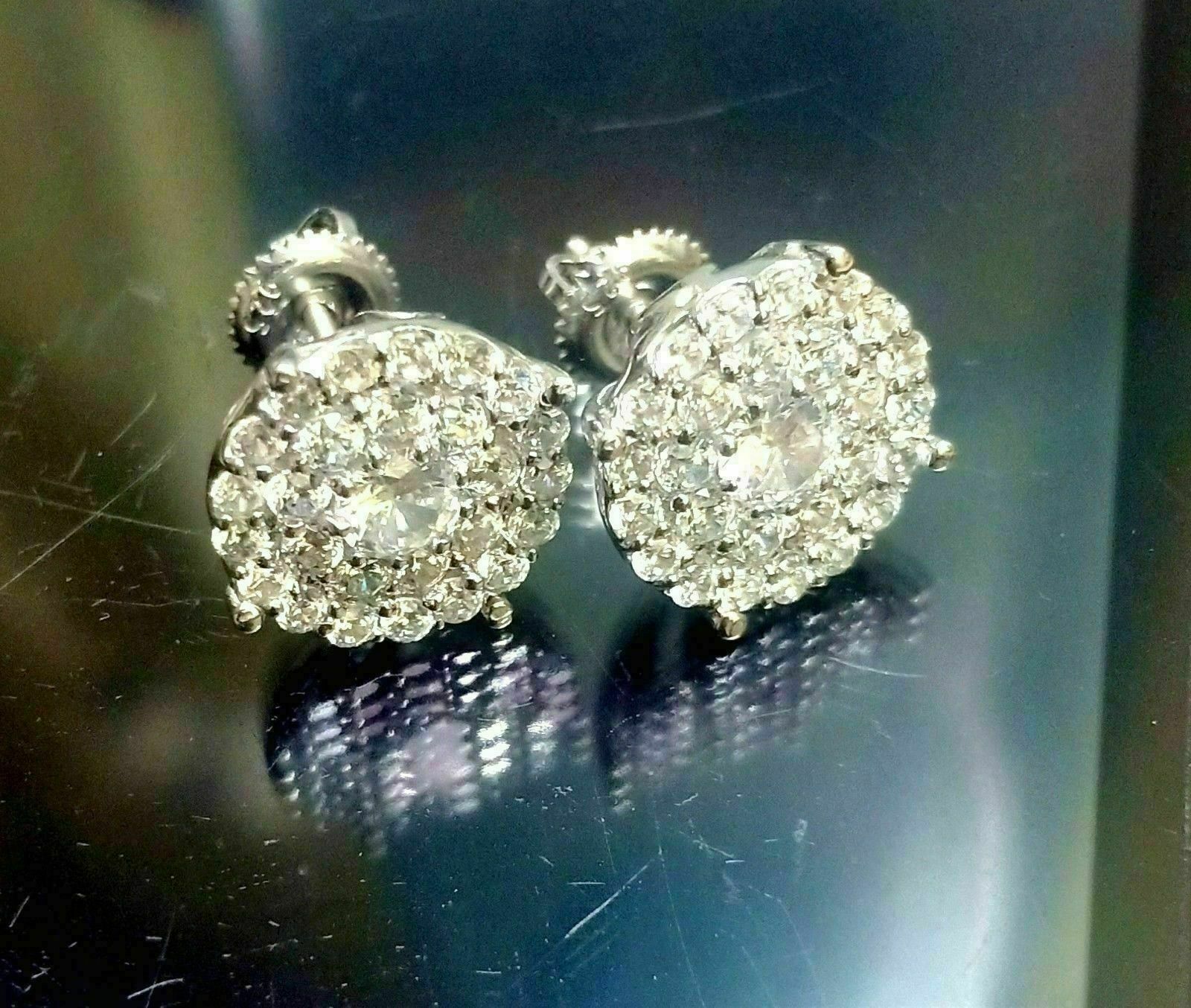 1.50Ct Corte Redondo D/VVS1 Diamante Racimo Dormilonas 14K Oro Blanco Acabado
