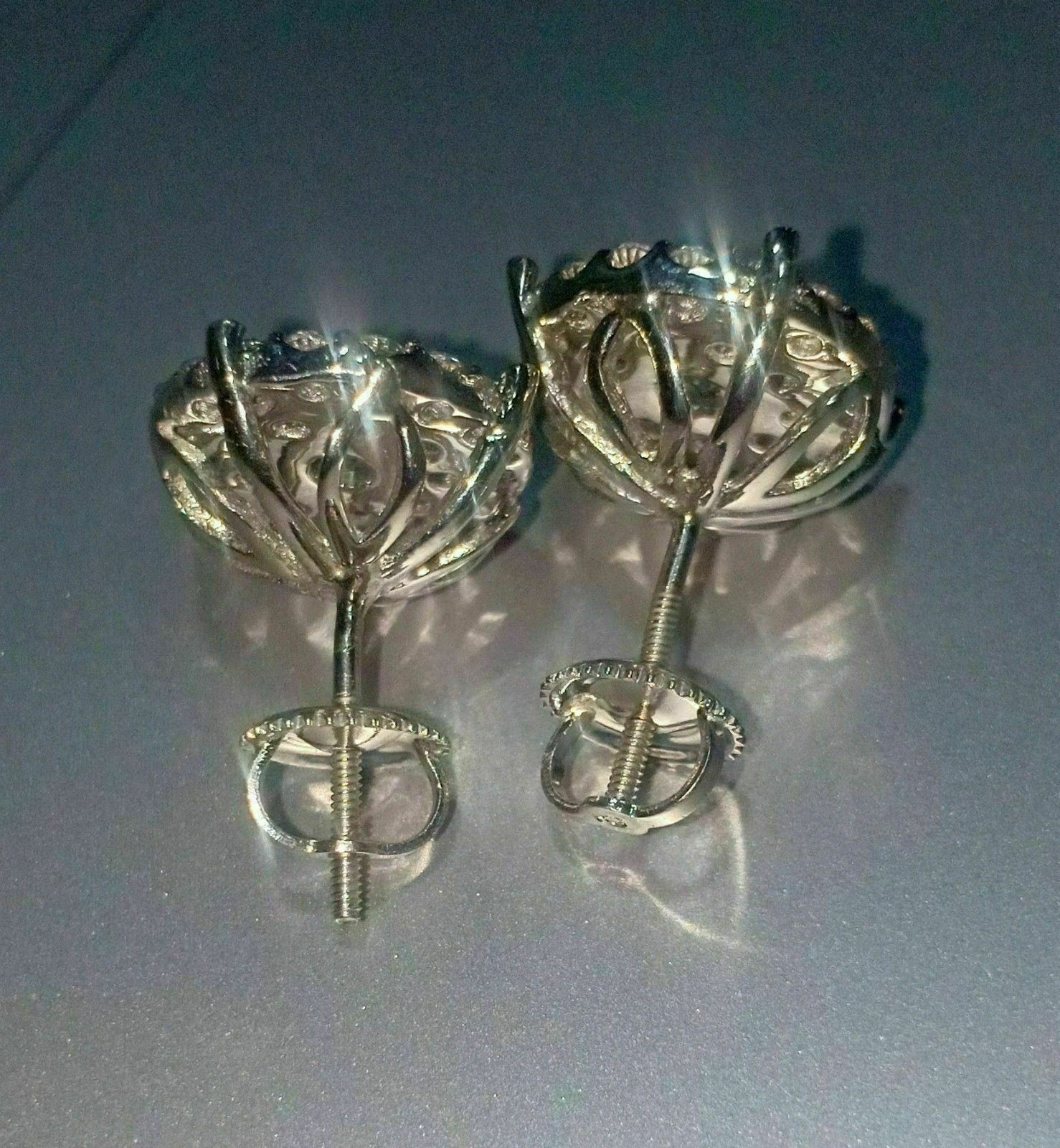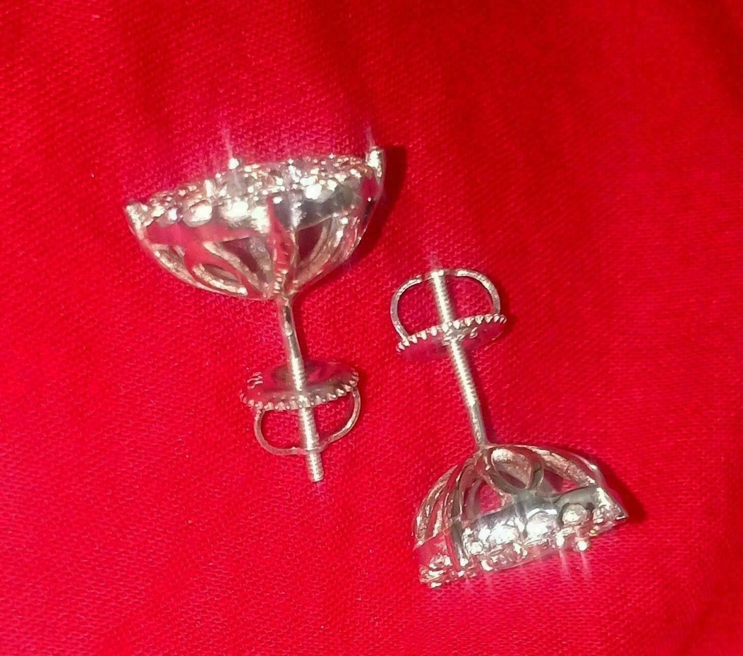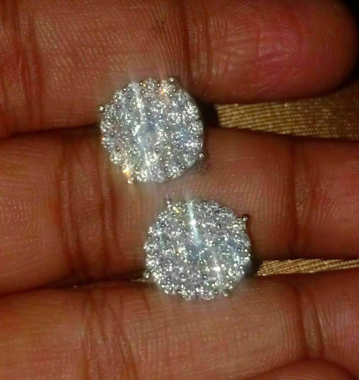 1.50Ct Corte Redondo D/VVS1 Diamante Racimo Dormilonas 14K Oro Blanco Acabado