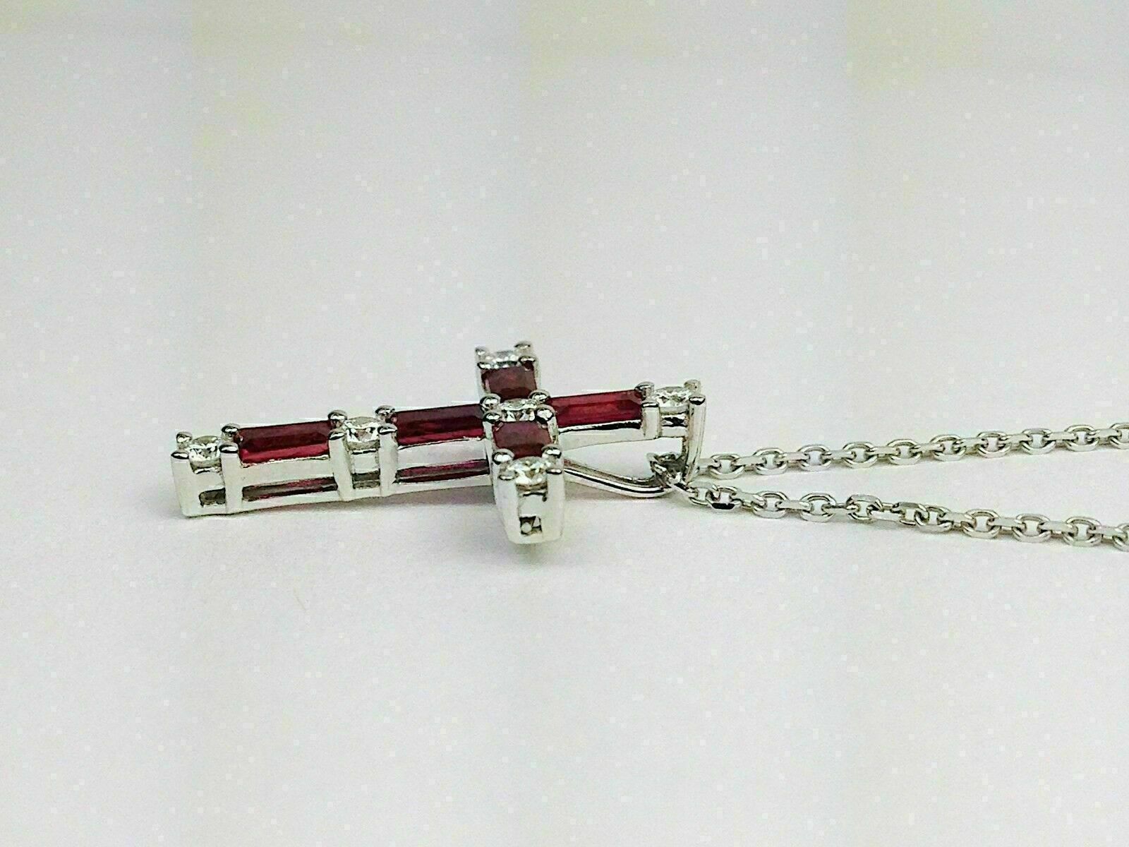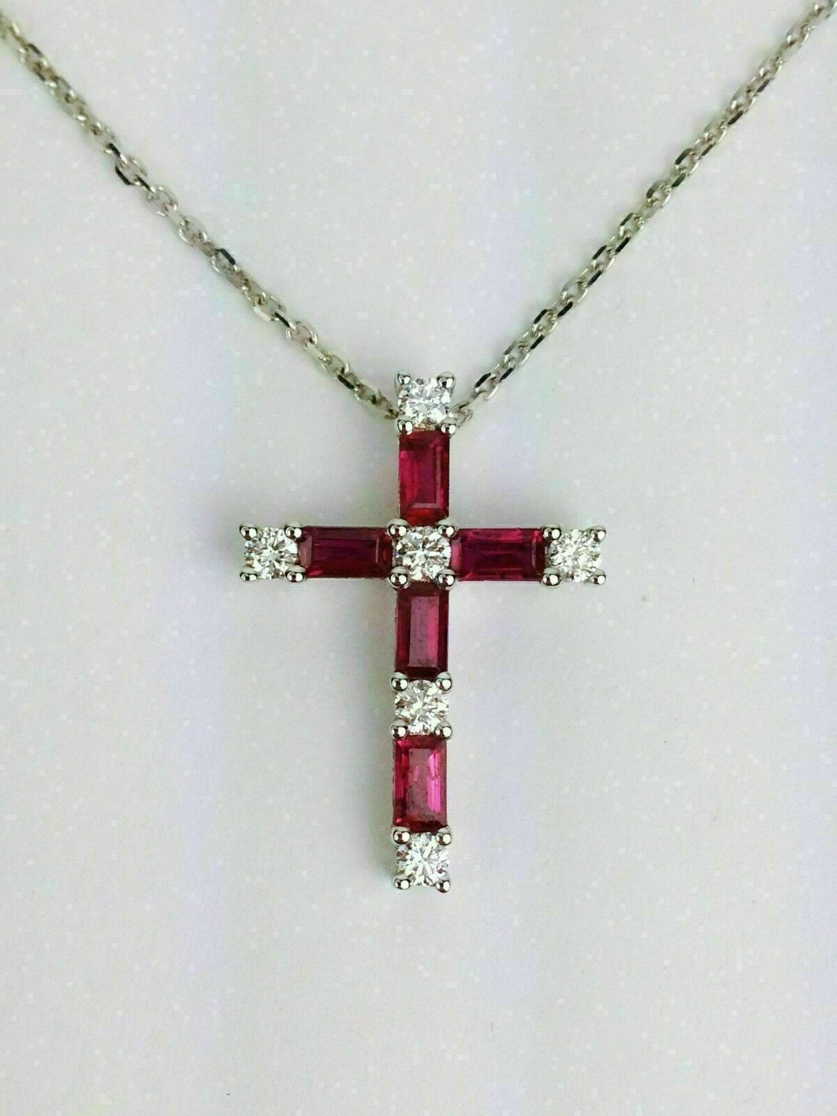 2.50Ct Corte Baguette Rubí Rojo Cruz Colgante 14K Acabado en Oro Blanco Libre 18